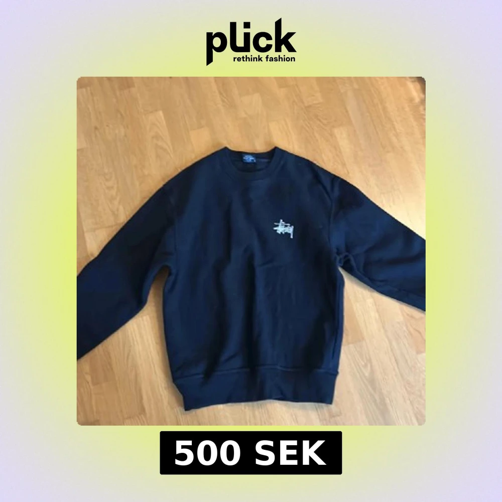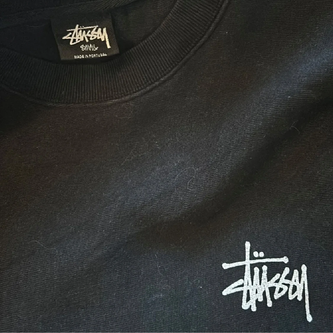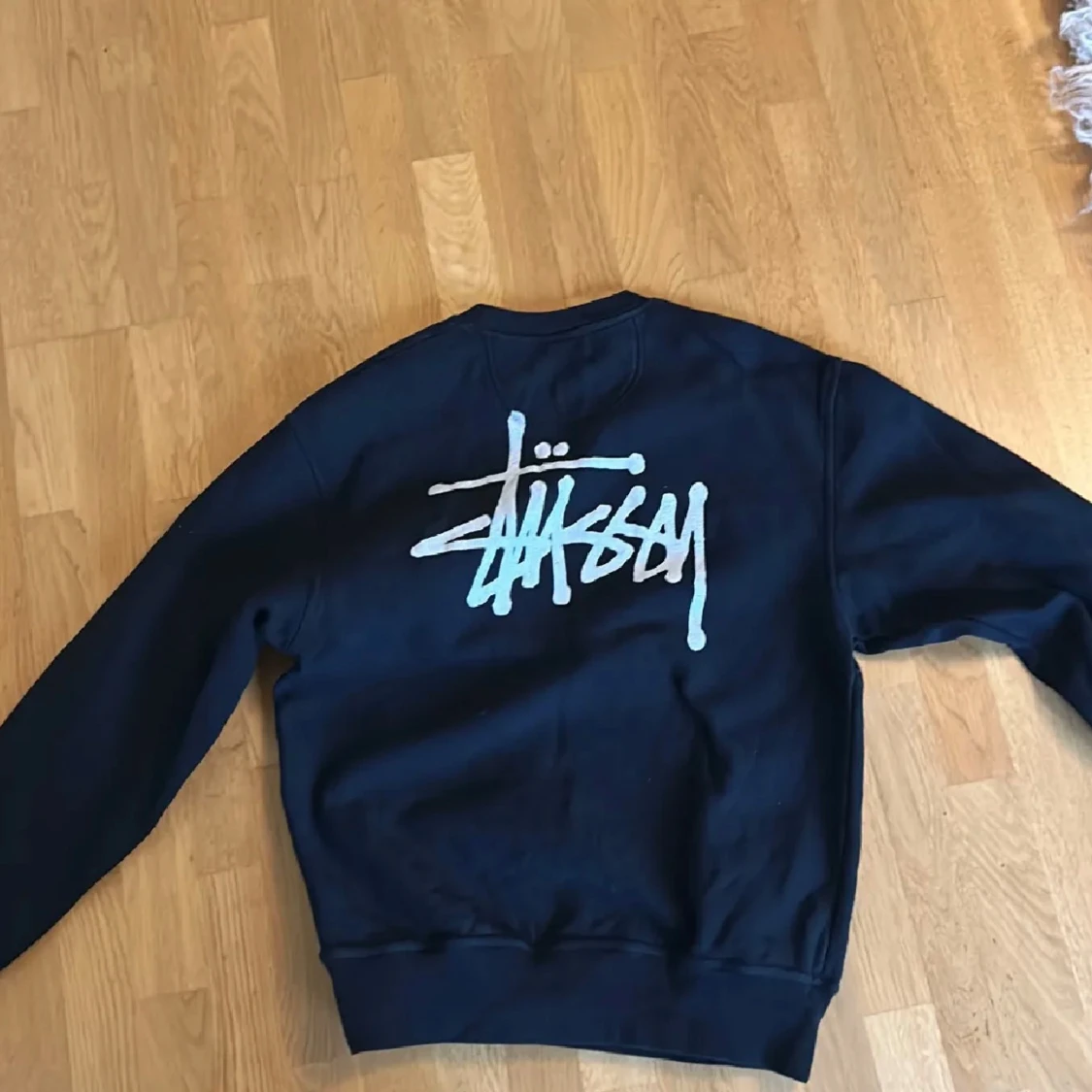 Det är en svart stussy sweatshirt i storlek small. Jag köpte den i en butik i kalmar. Är självklart äkta. Nypris ligger på omkring 1500. Den är nästintill oanvänd den har bara legat i en garderob i över ett år. Kan gå ner i pris vid snabb affär.