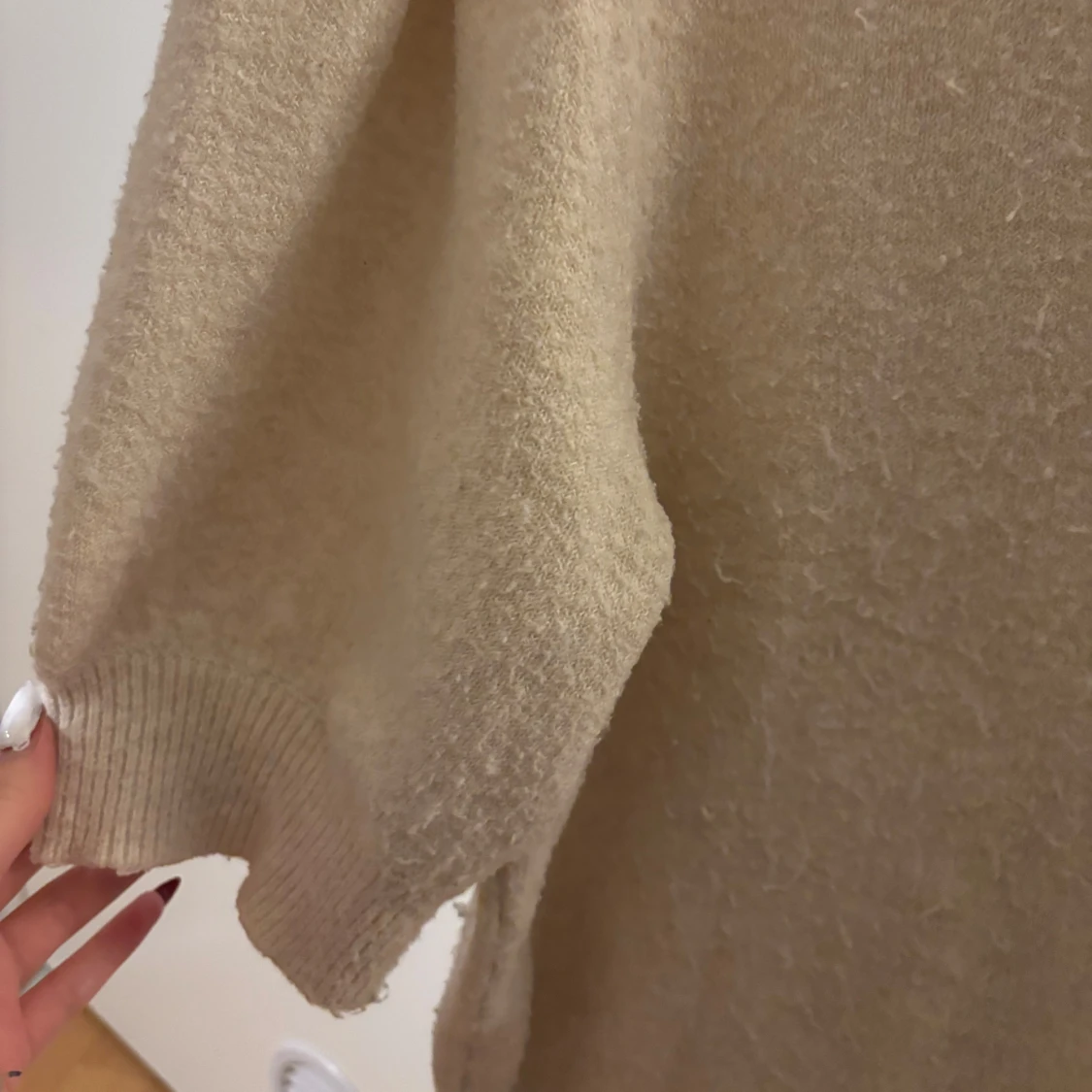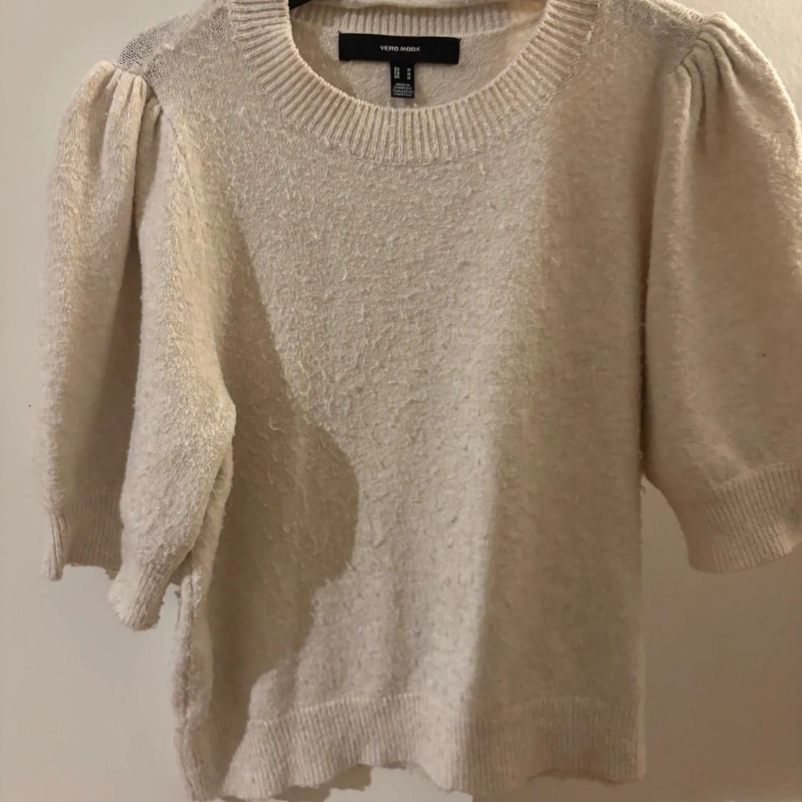 Säljer en mysig beige tröja från Vero Moda med puffiga trekvartsärmar och ribbad halsringning. Perfekt för en stilren och bekväm look. Passar bra till både jeans och kjol. 🌟Den är lite nopprig