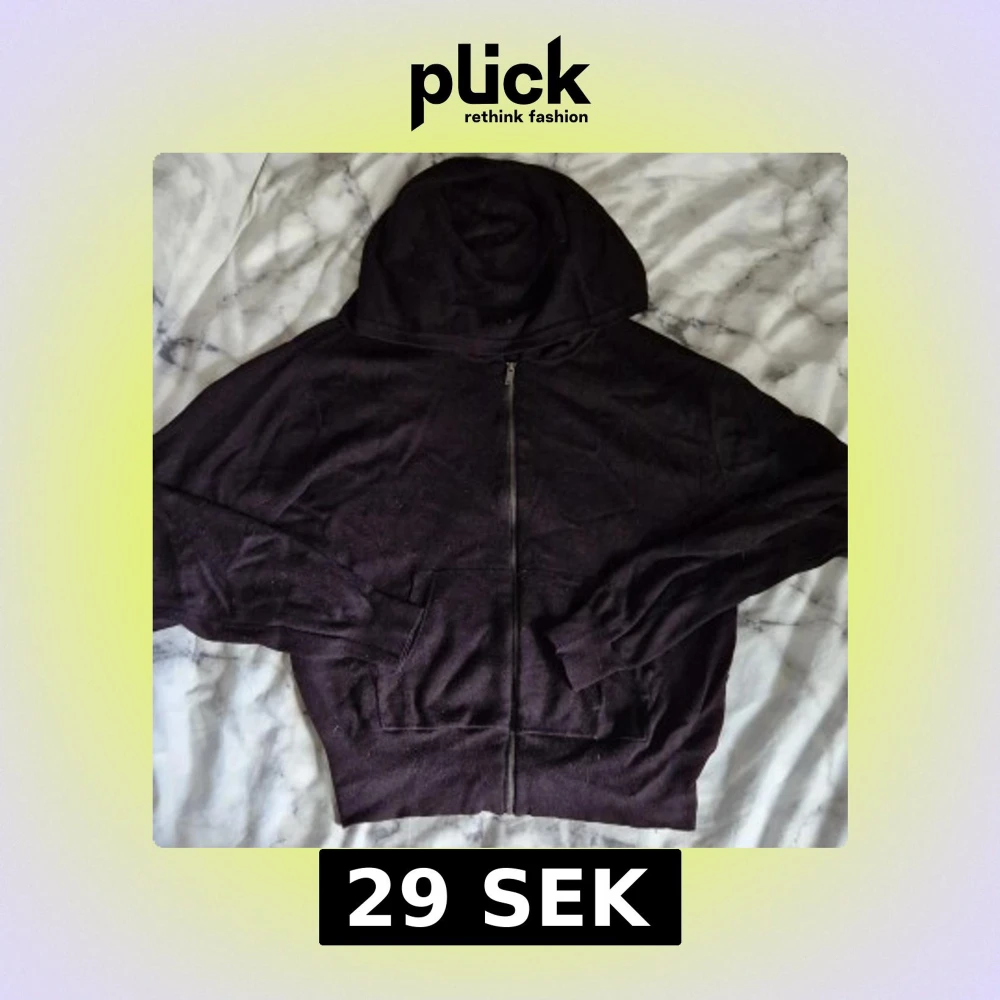 En svart hoodie med dragkedja framtill och huva. Tröjan har långa ärmar, smått ribbade och två fickor framtill. Perfekt för chill dagar eller när du vill ha en enkel och stilren look. Basic men skönt.