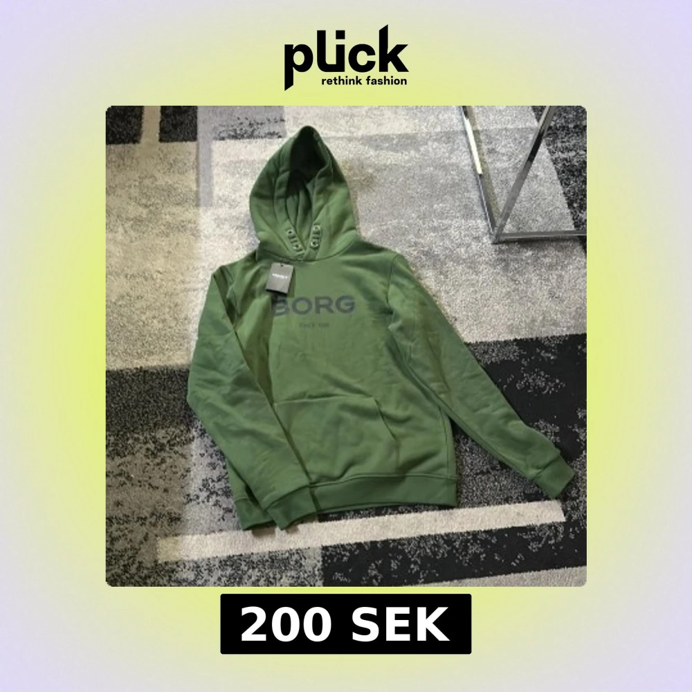Säljer en snygg grön hoodie från Björn Borg med tryck framtill. Den har en klassisk design med huva och långa ärmar. Perfekt för en avslappnad stil.