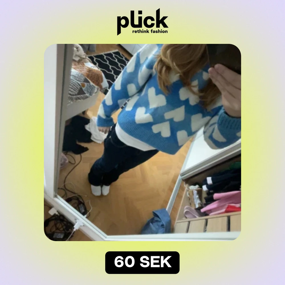 En jätte mysig blå tjocktröja med vita hjärtan. Nästan oanvänd. Nypris: 300kr 💞
