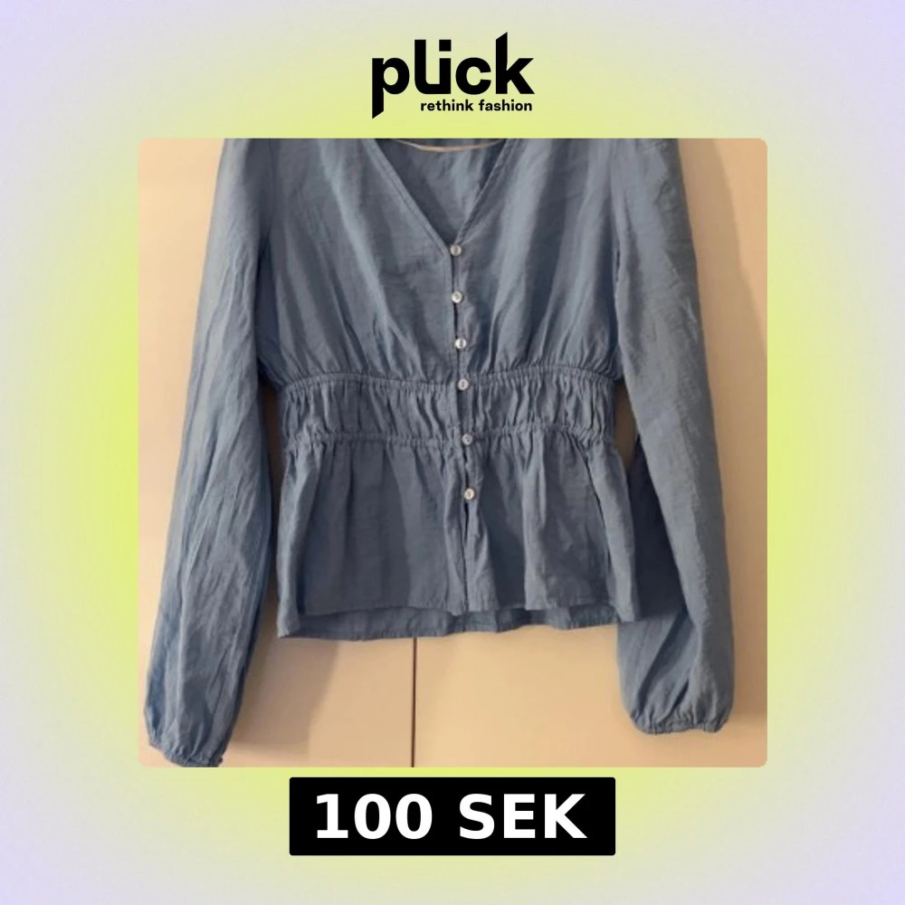 Supersöt ljusblå blus från Vero Moda i storlek XS. Blusen har v-ringning, knappar framtill och smockad midja som ger en snygg siluett. Långa ärmar med resår vid handlederna. Perfekt för vår och sommar!
