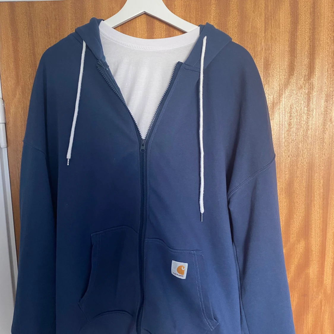 Säljer en blå zip hoodie från carhartt. Väldigt bra skick använd ett tiotal gånger. Storlek L. Priset kan diskuteras, hör av er vid flera frågor.