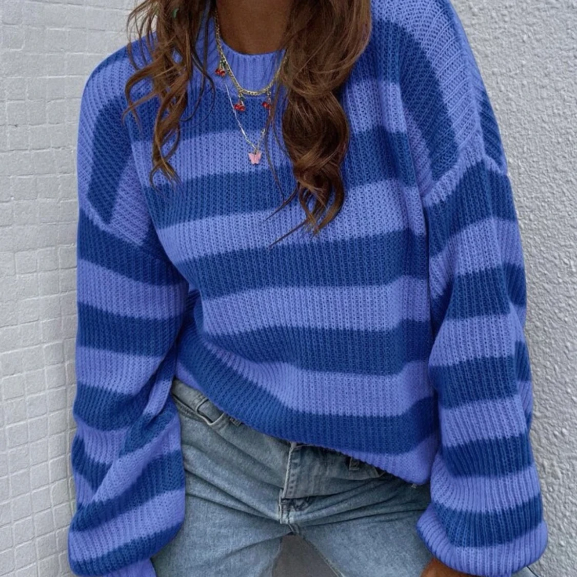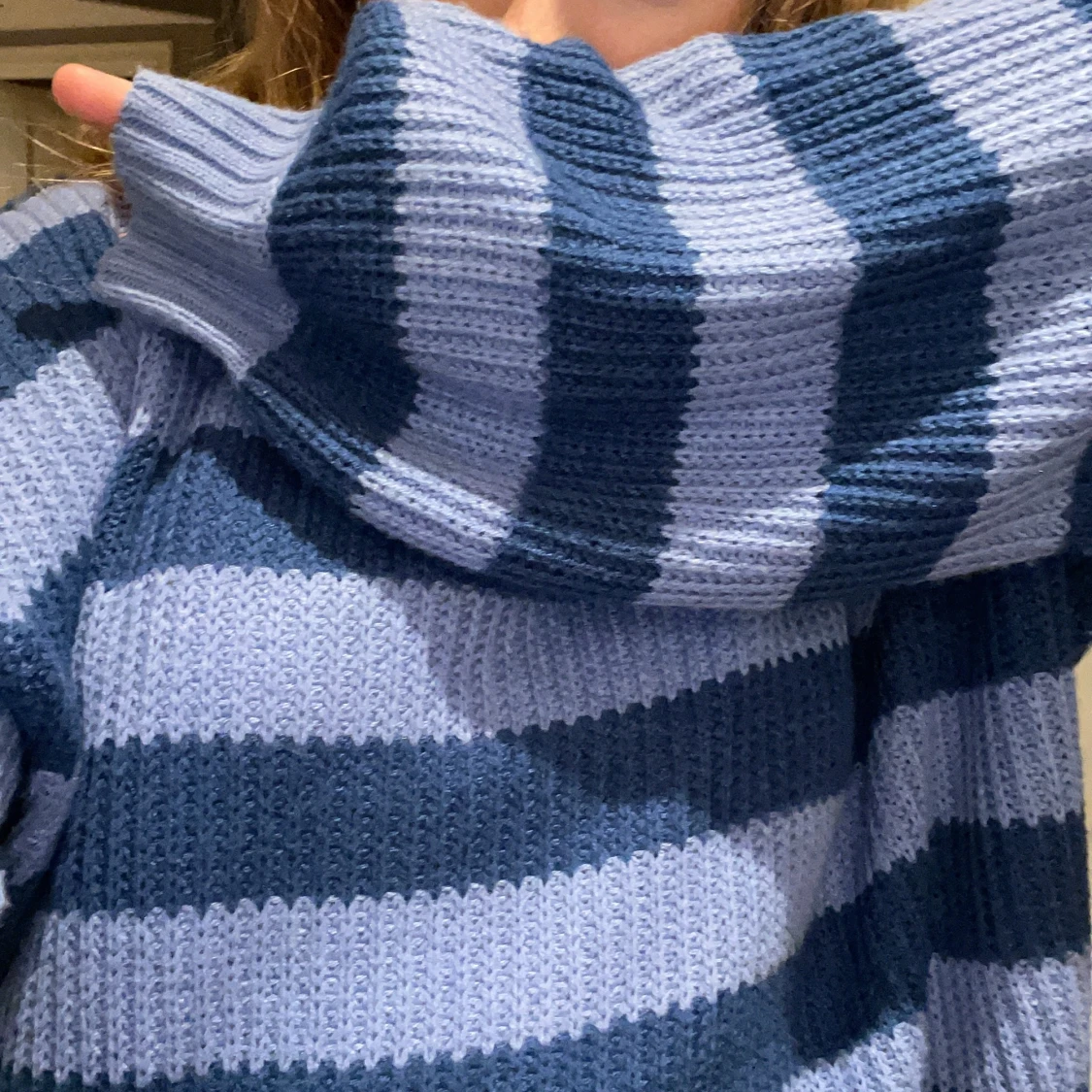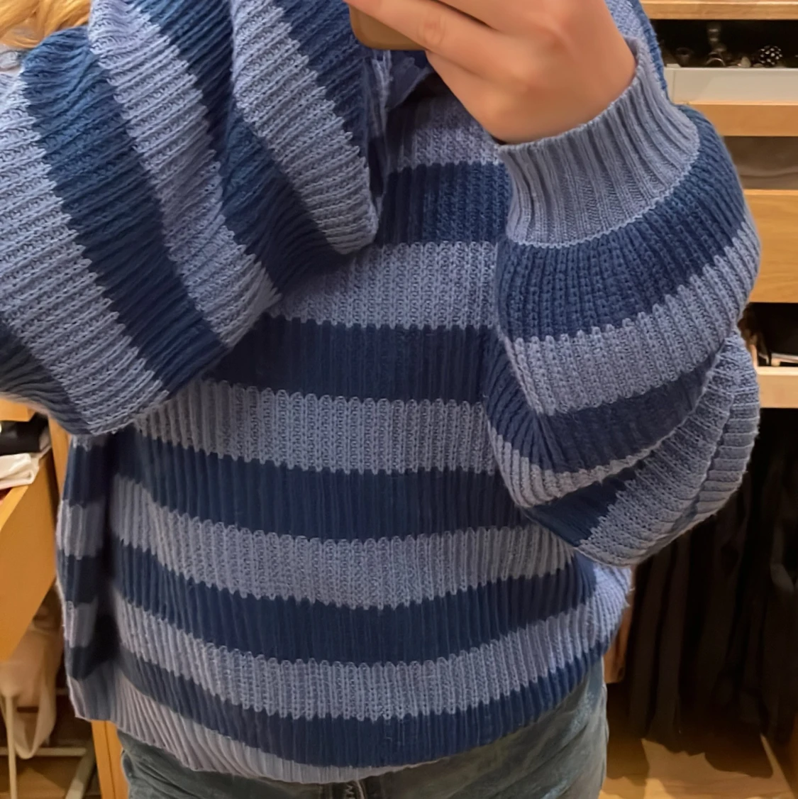 Säljer min fina blå randig stickade tröja, då den inte kommer till användning 💙 köpt på shein, använt en gång där av mycket bra skick🤍💙