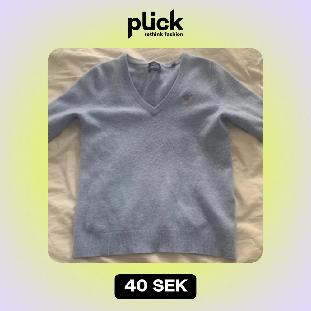 En blå stickad v-ringad gant tröja💕 ganska nopprig därav priset, inga defekter utom att lappen är lite trasig💓