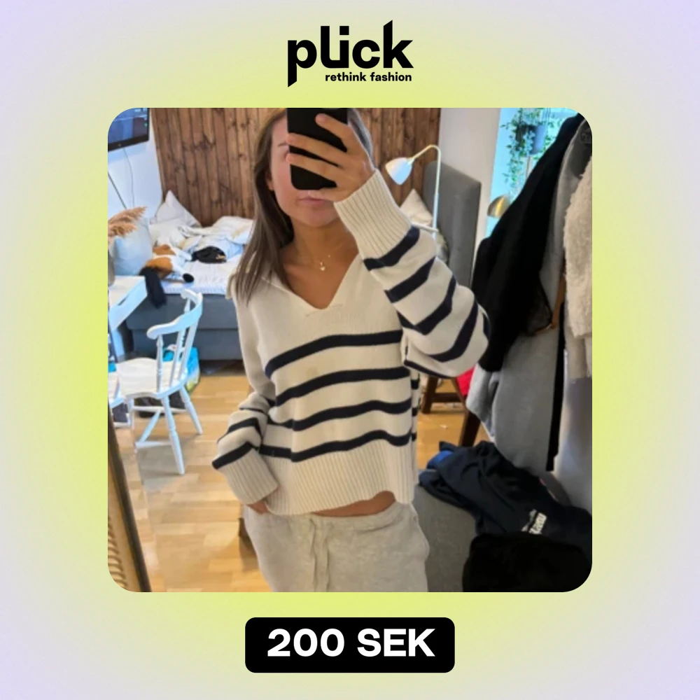 Säljer en supermysig vit tröja med blå ränder. Den har en avslappnad passform och är perfekt för både chill dagar hemma och när du vill vara bekväm men ändå snygg. Tröjan är långärmad och har en v-ringad hals, vilket ger den en lite mer stilren look. Perfekt för höst och vår! Tröjan är i en Xl, men passar mig som vanligtvis är en S/m