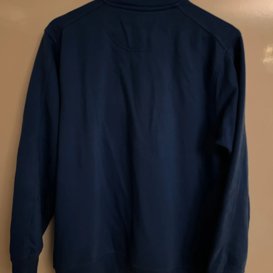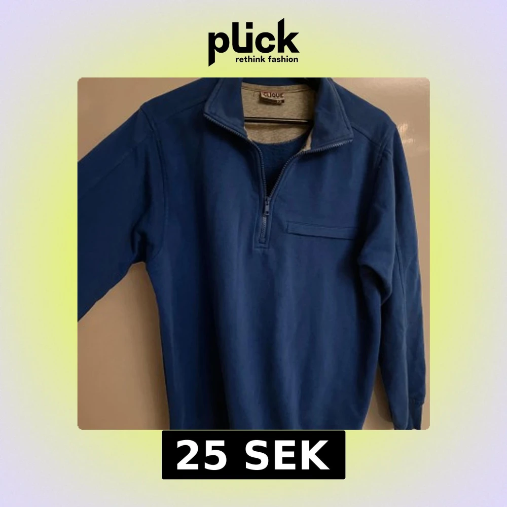 Mörkblå långärmad tröja från Clique i storlek XS. Tröjan har en praktisk half zip-dragkedja framtill och en liten bröstficka. Tillverkad i mjuk bomull, perfekt för kyligare dagar.