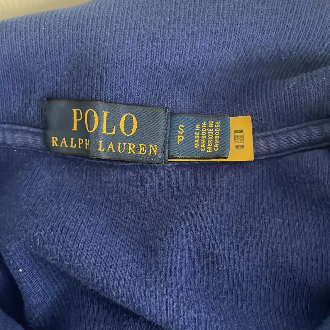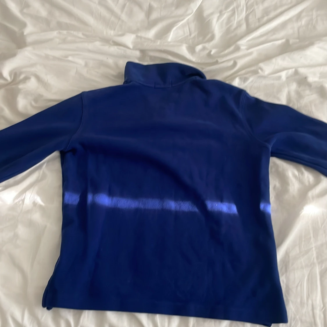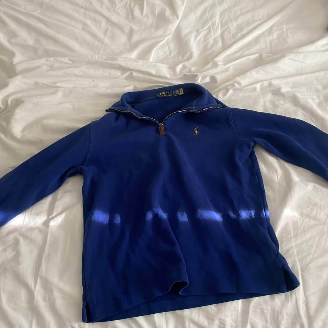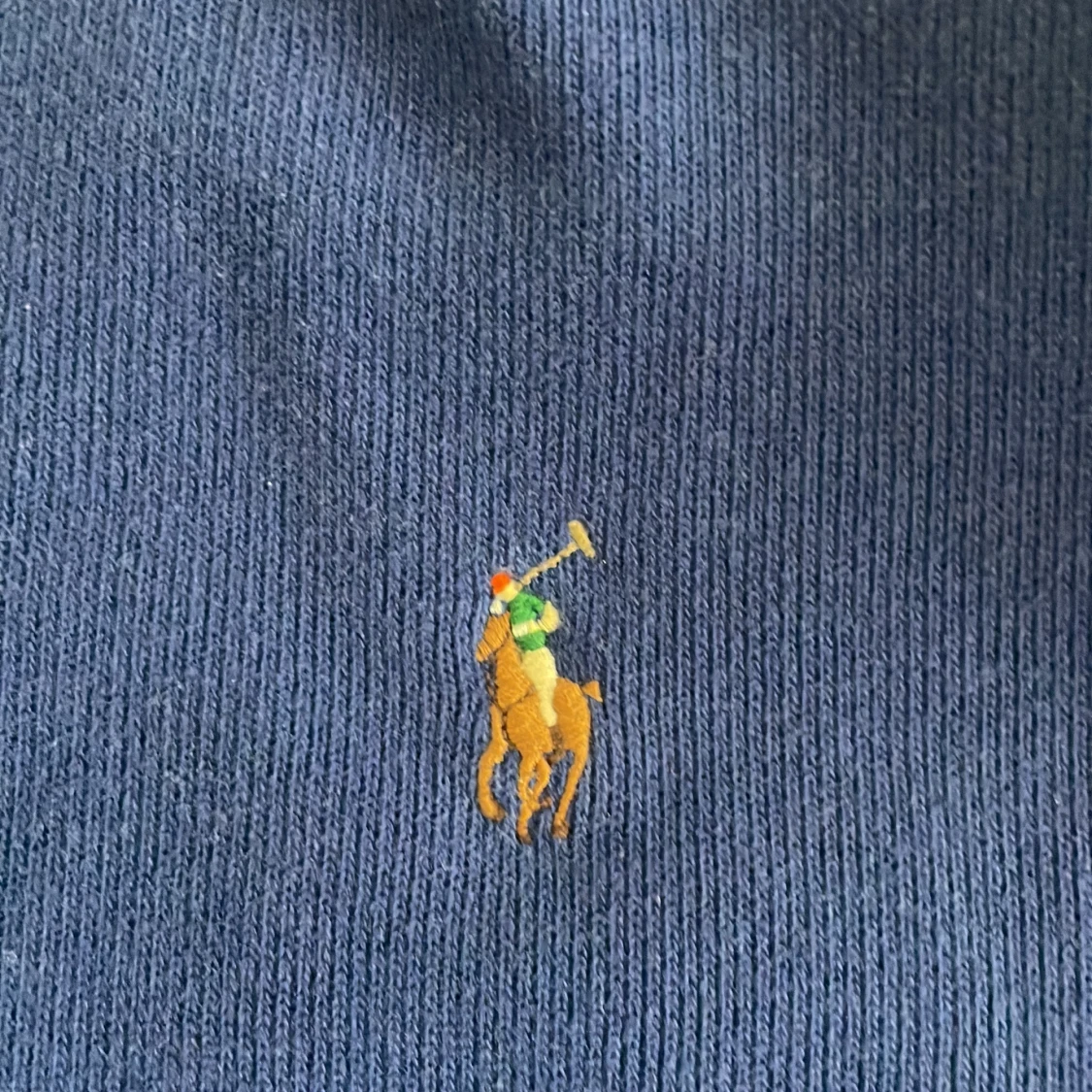 Säljer en blå långärmad tröja från Polo Ralph Lauren med half zip och klassisk broderad logga på bröstet. Tröjan har hög krage och är i mjukt bomullsmaterial, perfekt för lager-på-lager. Enkel och stilren design som funkar året runt.