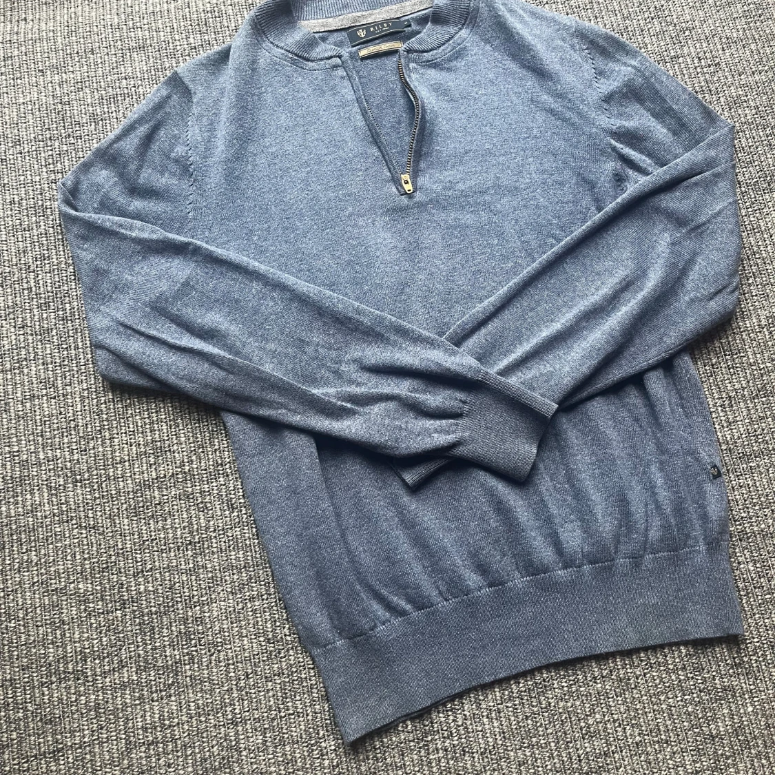 Snygg blå tröja från Riley i premium bomull. Modellen har lång ärm, ribbade muddar och en stilren half zip-dragkedja framtill. Perfekt för dig som gillar en clean look med lite sportig touch. Passar lika bra till jeans som till chinos. Hör av er vid frågor och funderingar👏Svarar ofta snabbt👏skickar inom 1-2 dagar☺️kom gärna med prisförslag så kan vi säkert lösa något som funkar för båda😄