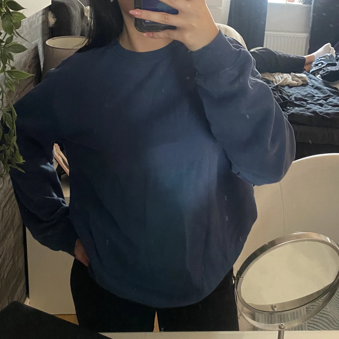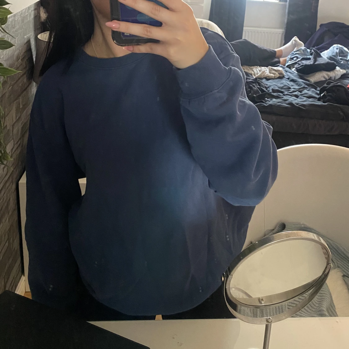 Blå oversized sweatshirt ifrån hm, storlek S. Använd en gång och i fin kvalitet. Köparen står för frakten ❣️