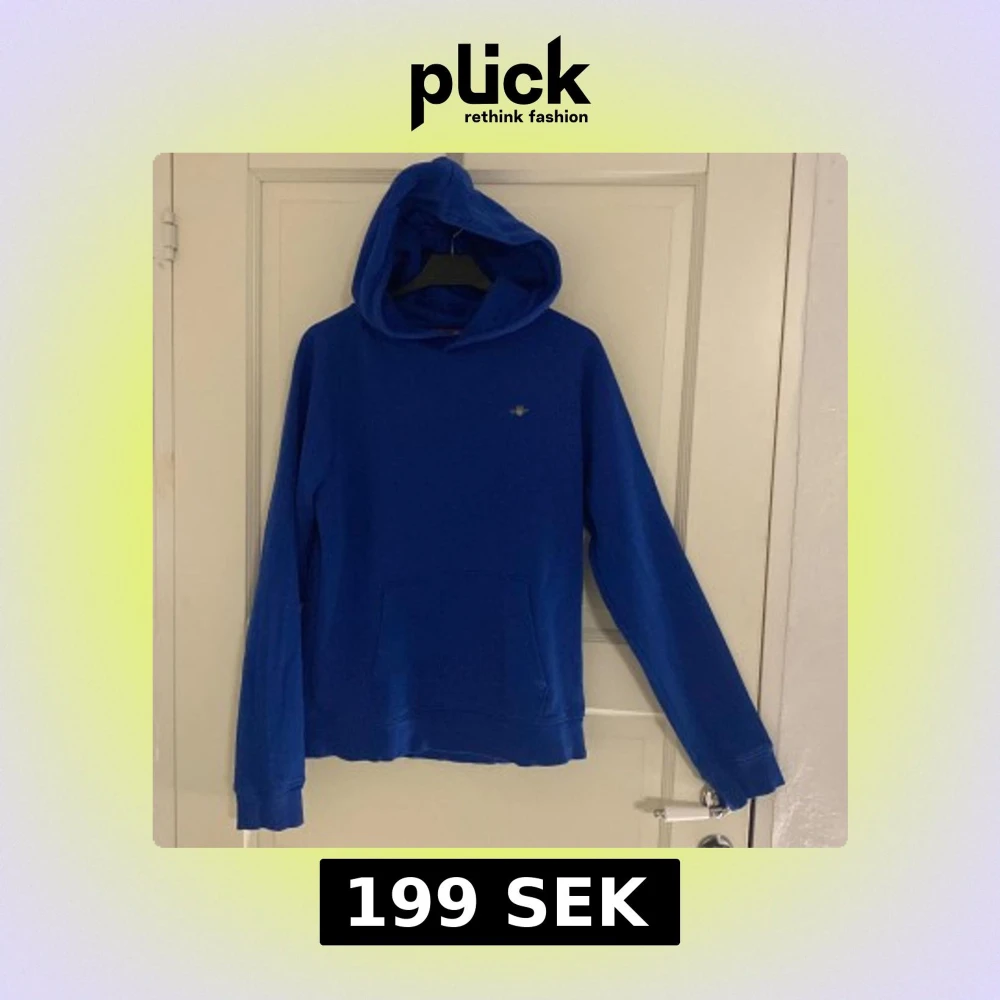 Säljer en snygg blå hoodie från Gant med broderad logga på bröstet. Tröjan har en klassisk känguruficka och en bekväm huva. Perfekt för en avslappnad stil.