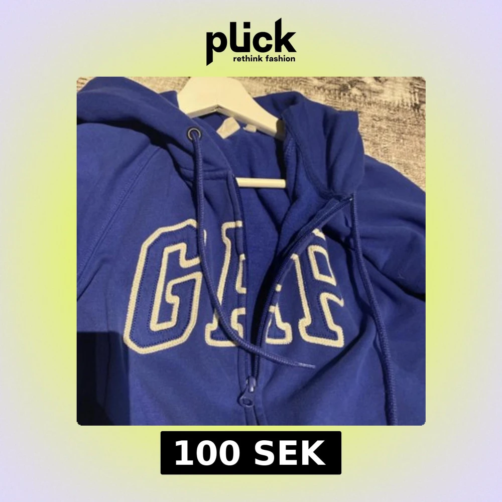 Säljer en snygg blå hoodie från GAP med dragkedja och stor logga framtill. Tröjan har långa ärmar och en praktisk huva med dragsko. Perfekt för en avslappnad stil.
