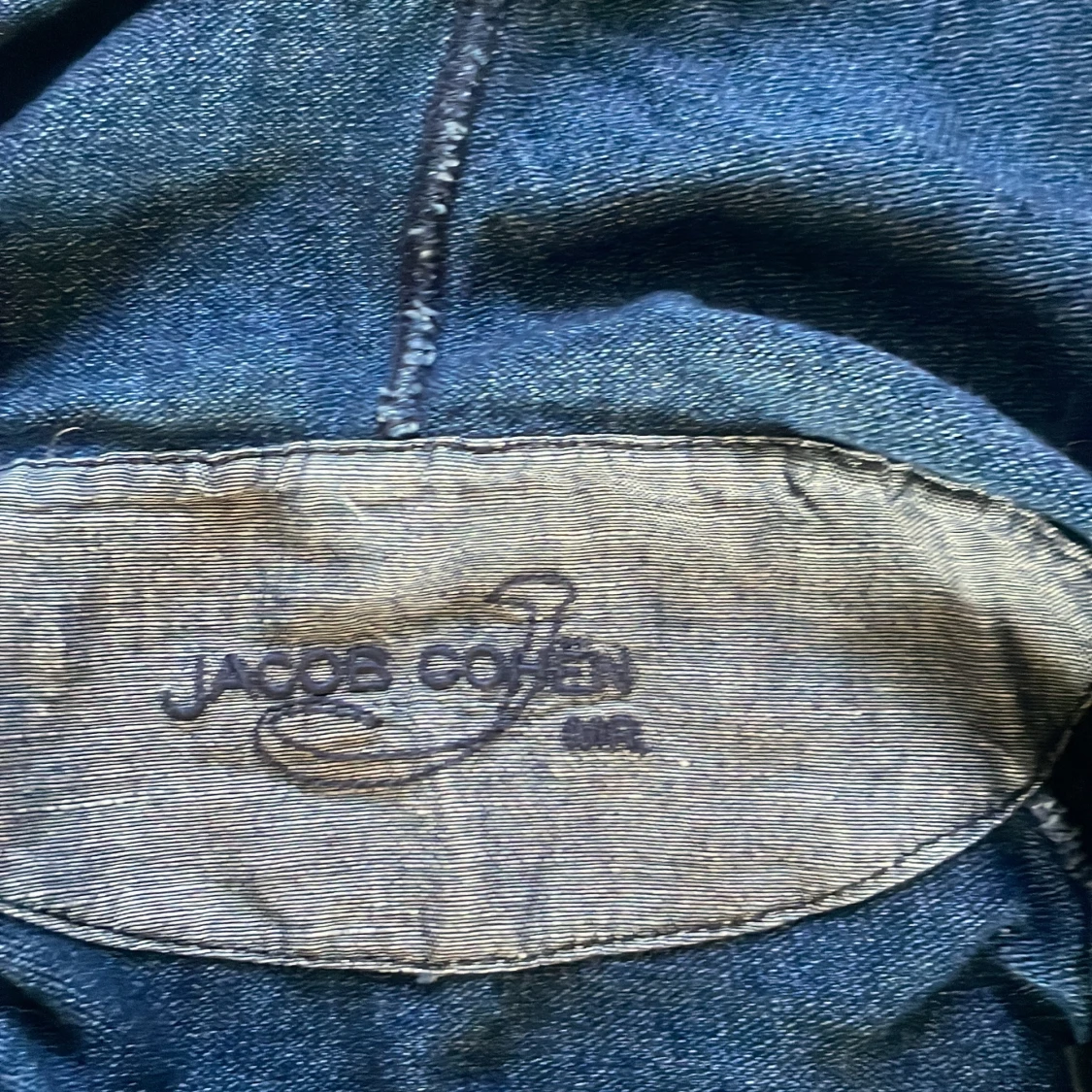 Säljer en snygg blå hoodie från Jacob Cohen, tillverkad i Italien. Den har en dragkedja framtill och en bekväm passform med långa ärmar. Perfekt för en avslappnad stil. Model 179 och 65 kg