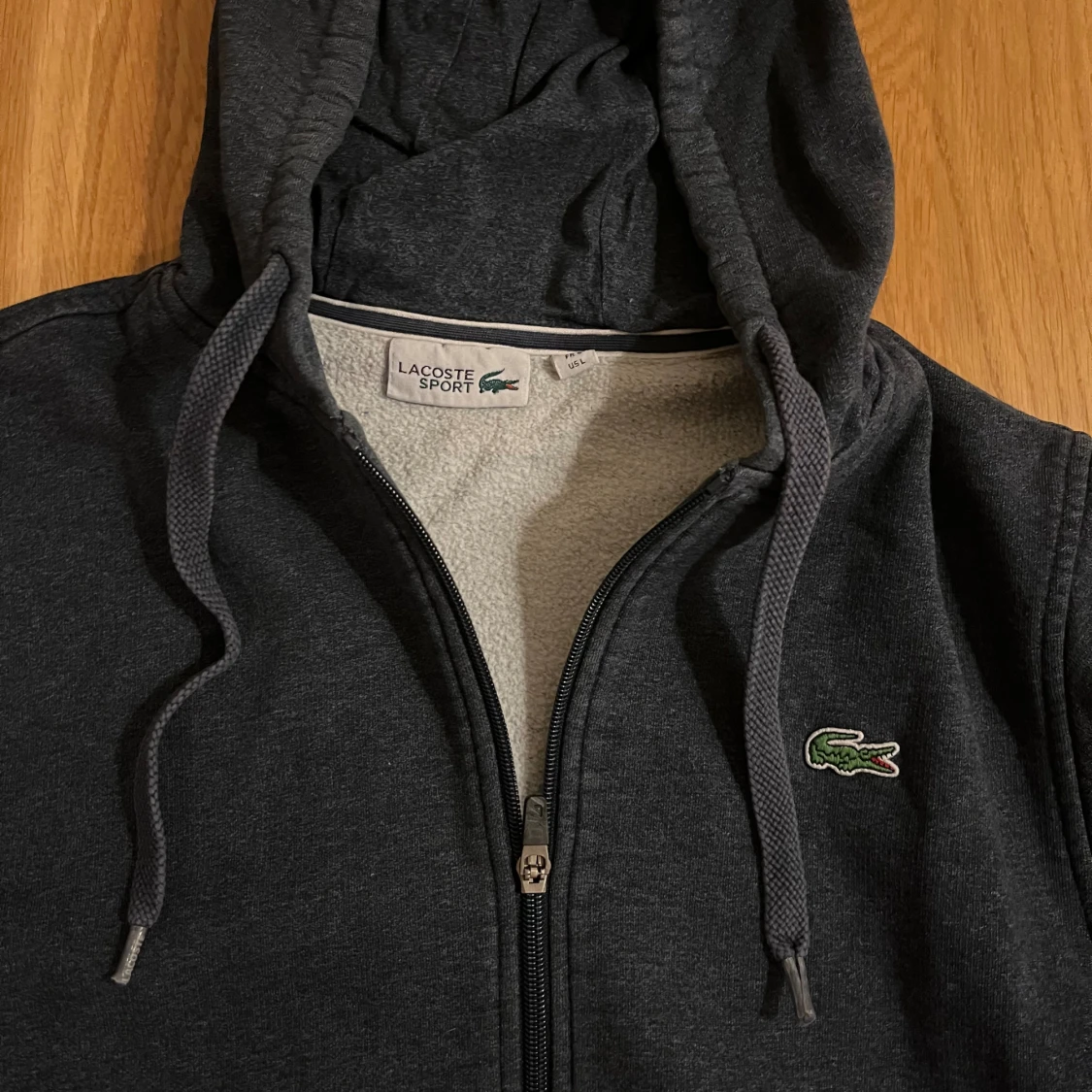 Blå fet hoodie i bra skick från Lacoste. Priset kan diskuteras. L men sitter som M