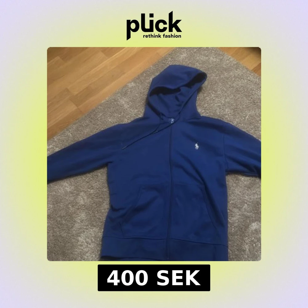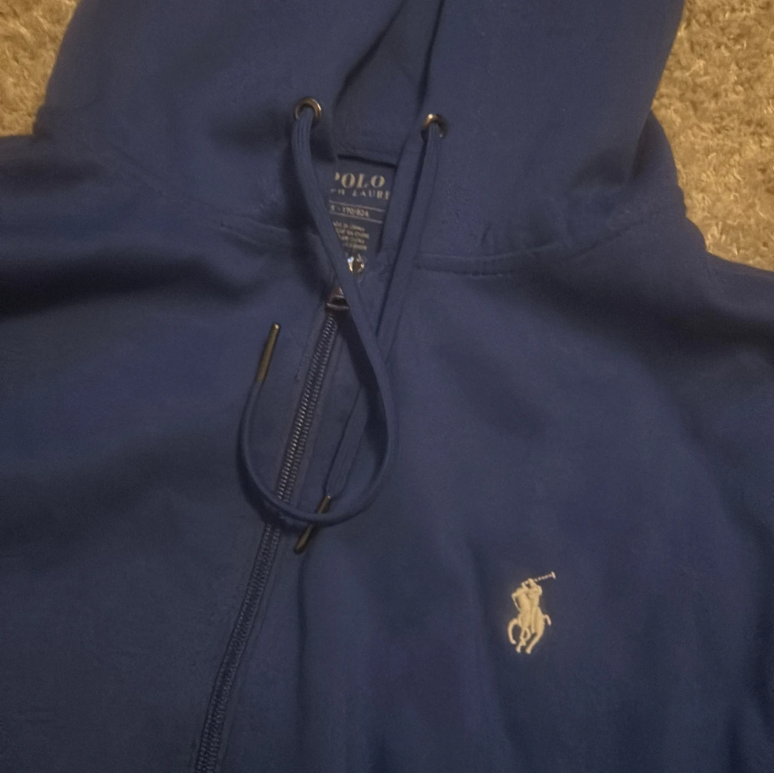 Säljer en snygg blå hoodie från Polo Ralph Lauren med dragkedja. Har använt den några gånger bara så den är i bra skick och är i storleken S