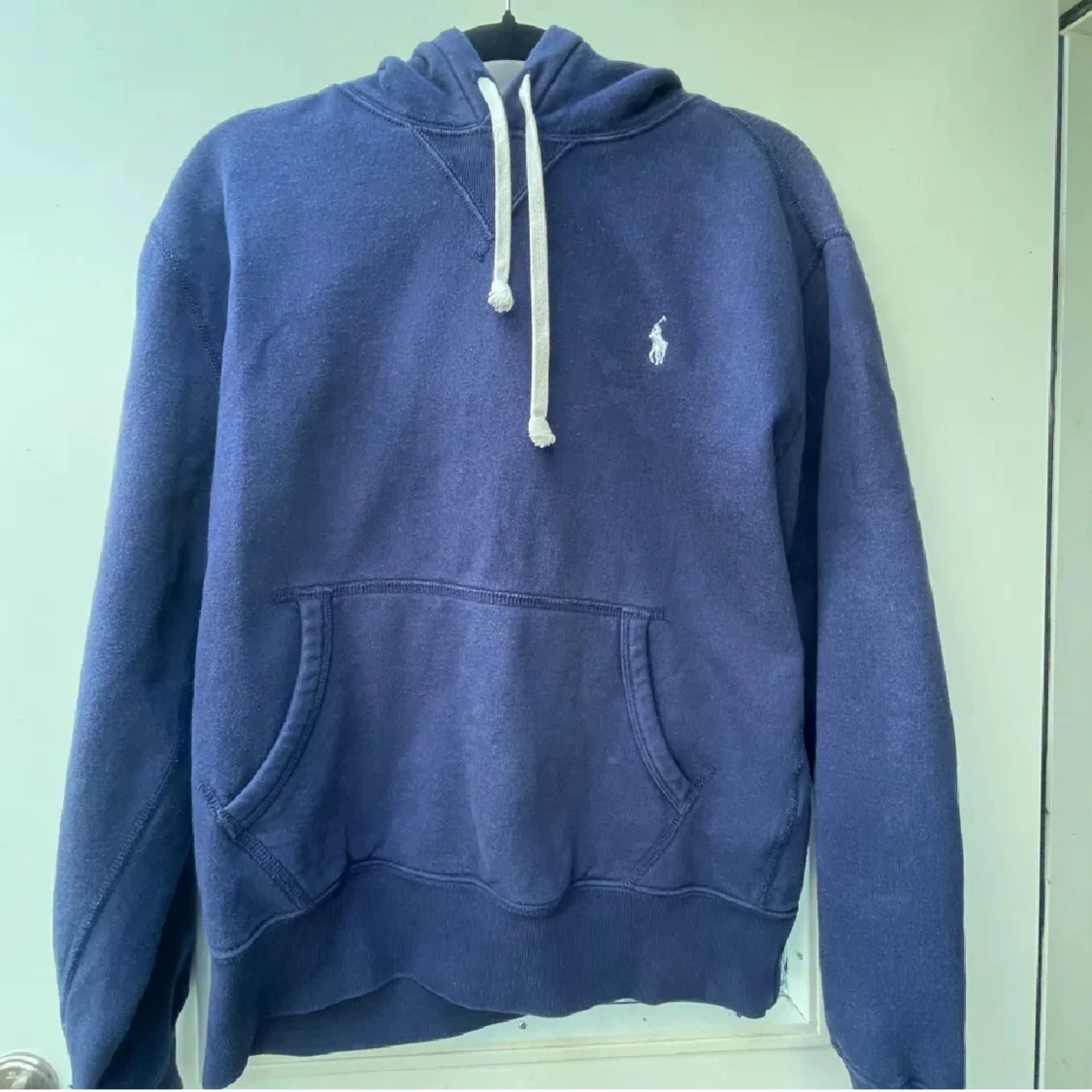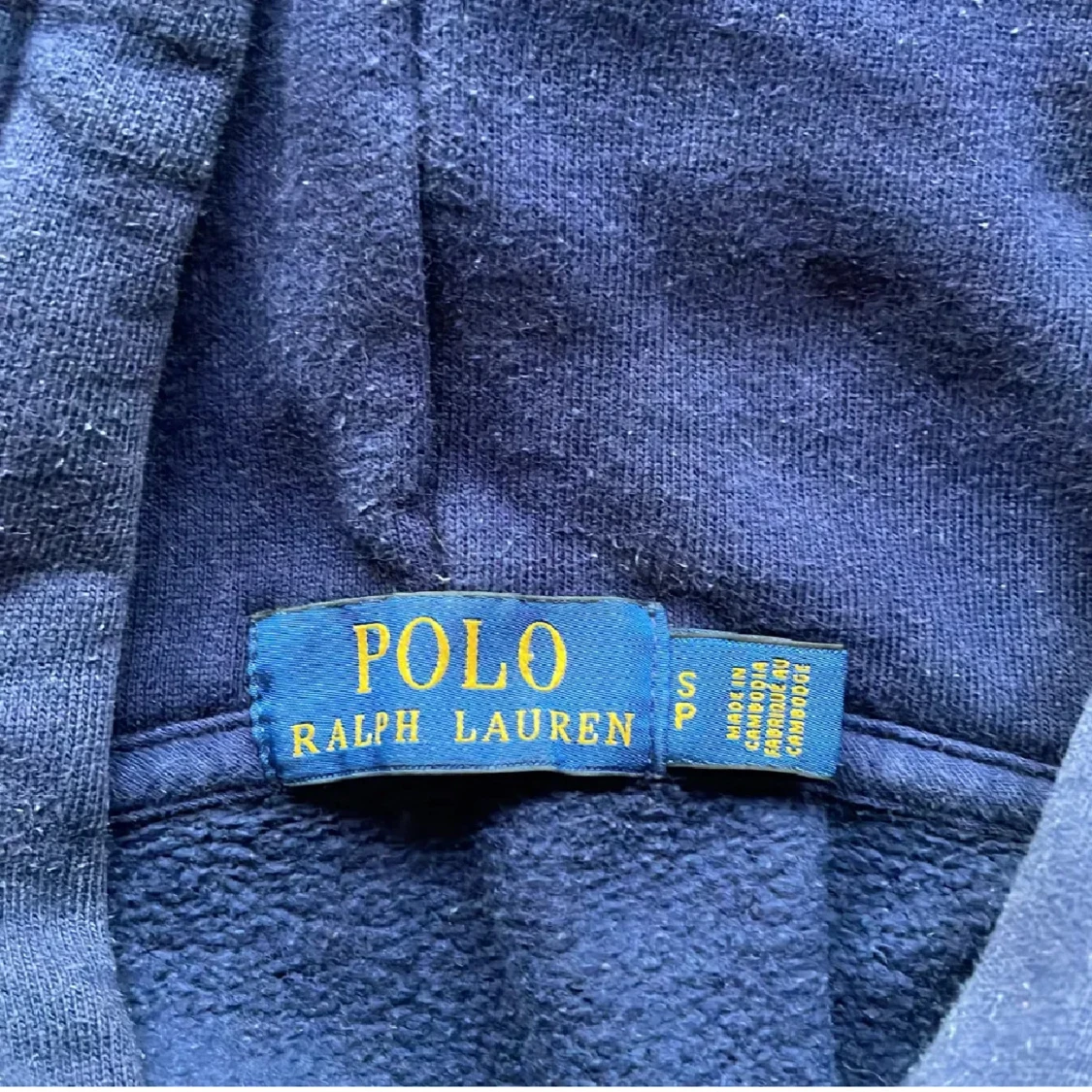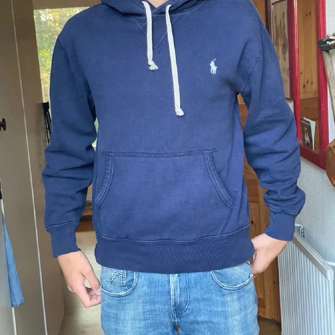 Mörkblå hoodie från Polo Ralph Lauren med vit broderad logga på bröstet. Tröjan har huva med vita snören, känguruficka och ribbade muddar. Skön och klassisk modell i bomull, perfekt för chill dagar eller när du vill ha en clean look.