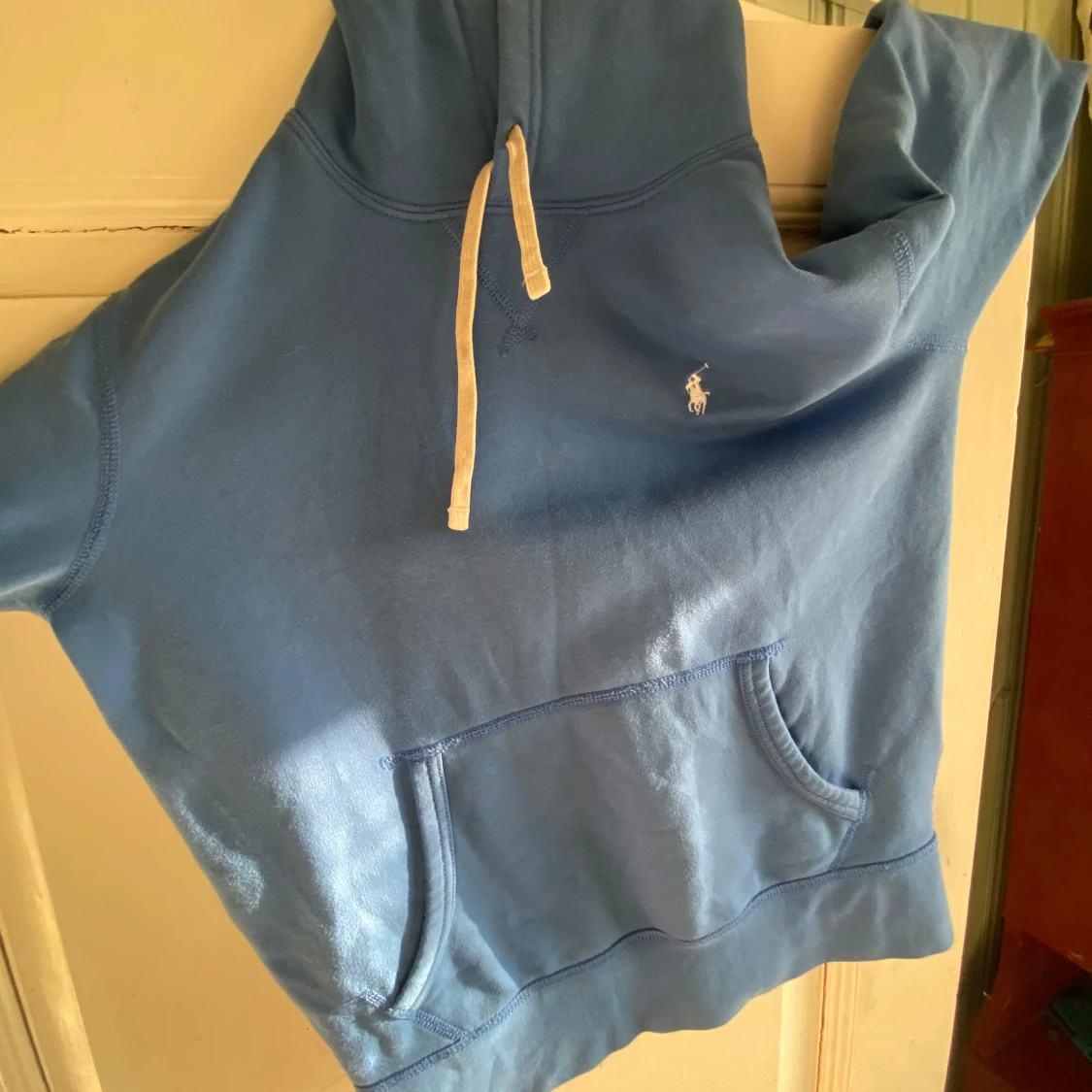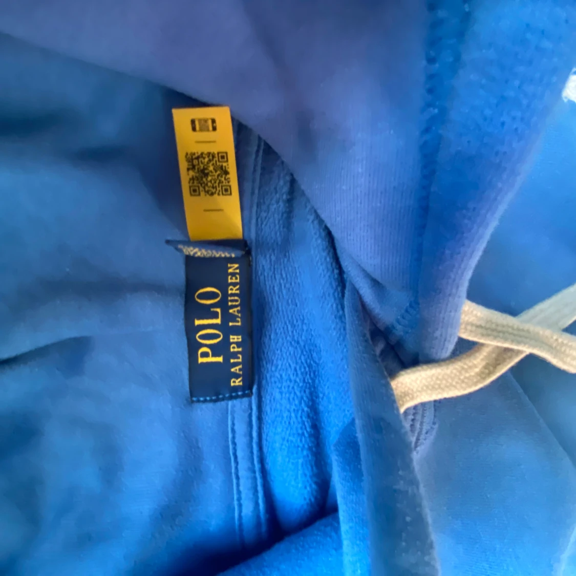 Säljer en chill blå hoodie från Polo Ralph Lauren i storlek S. Tröjan har vit snörning vid huvan, klassisk känguruficka och den ikoniska Polo-loggan broderad på bröstet. Perfekt för dig som gillar stilren och bekväm streetwear.