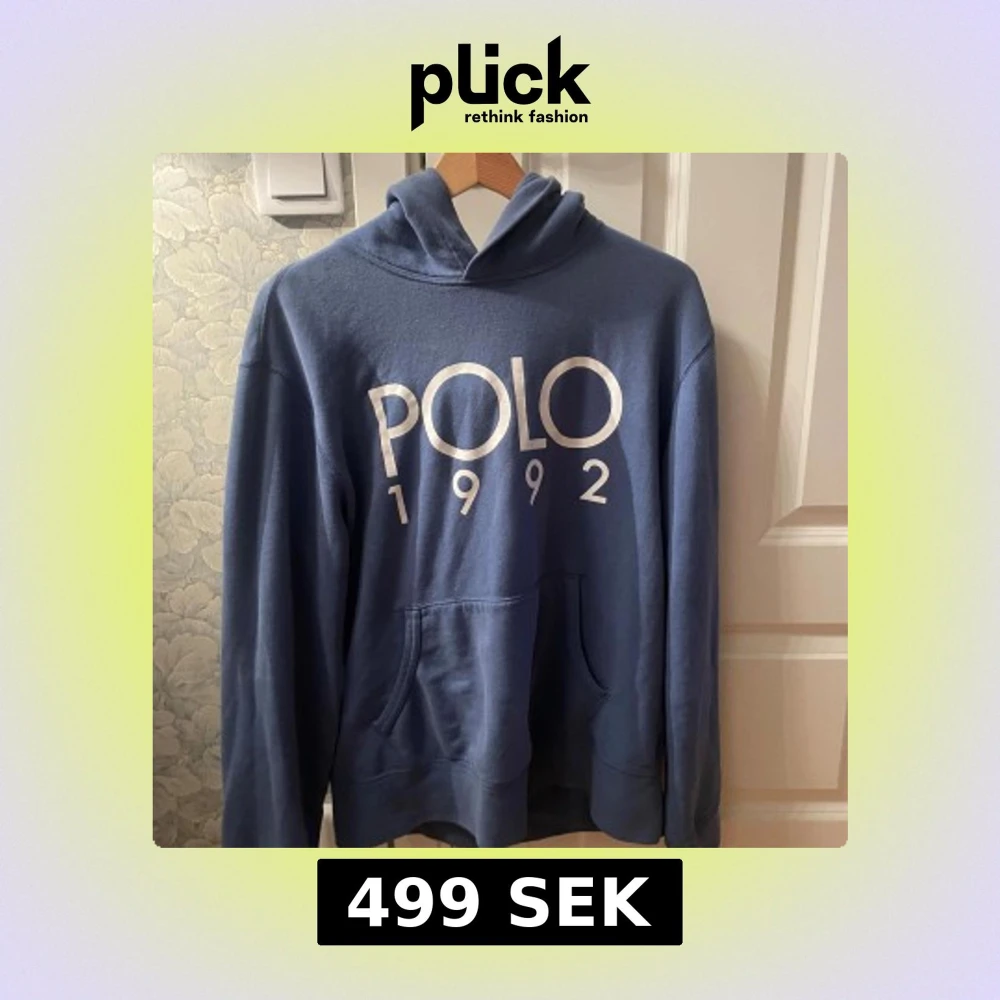 Snygg blå hoodie från Polo Ralph Lauren med stor vit logga och årtalet 1992 tryckt på bröstet. Tröjan har huva, känguruficka och långa ärmar. Perfekt för dig som gillar klassisk streetstyle och vill ha en bekväm och stilren look.