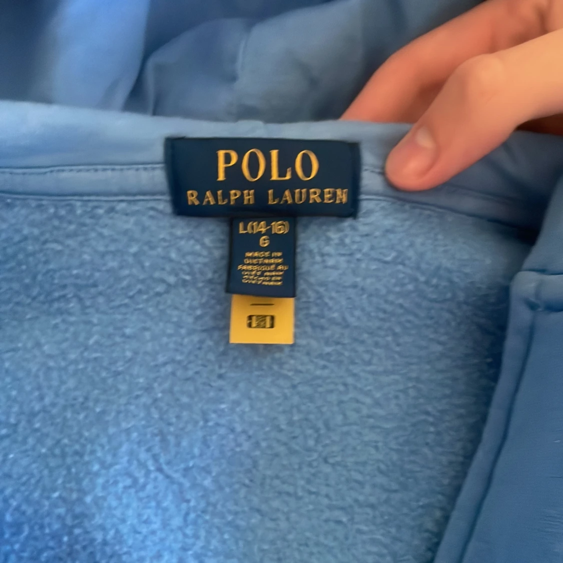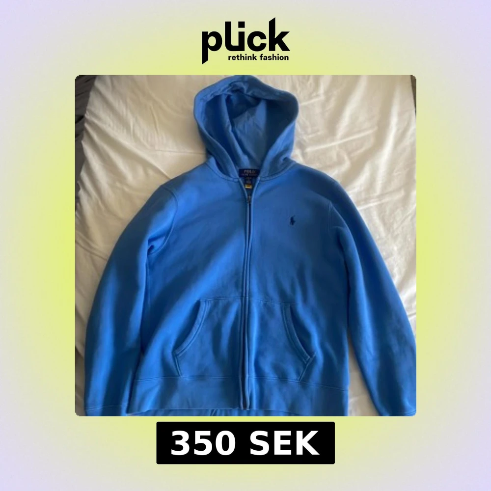Snygg blå hoodie från Polo Ralph Lauren med dragkedja och huva. Tröjan har två fickor framtill och det klassiska Polo-logot broderat på bröstet. En oanvänd polo- Ralph lauren tröja som är i topp skick🌟