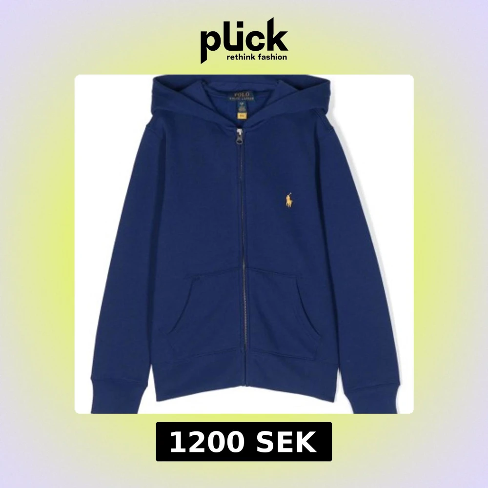 Snygg blå hoodie från Polo Ralph Lauren med dragkedja och klassisk gul logga på bröstet. Perfekt för en avslappnad stil med praktiska fickor framtill. Passar bra till både jeans och joggers.