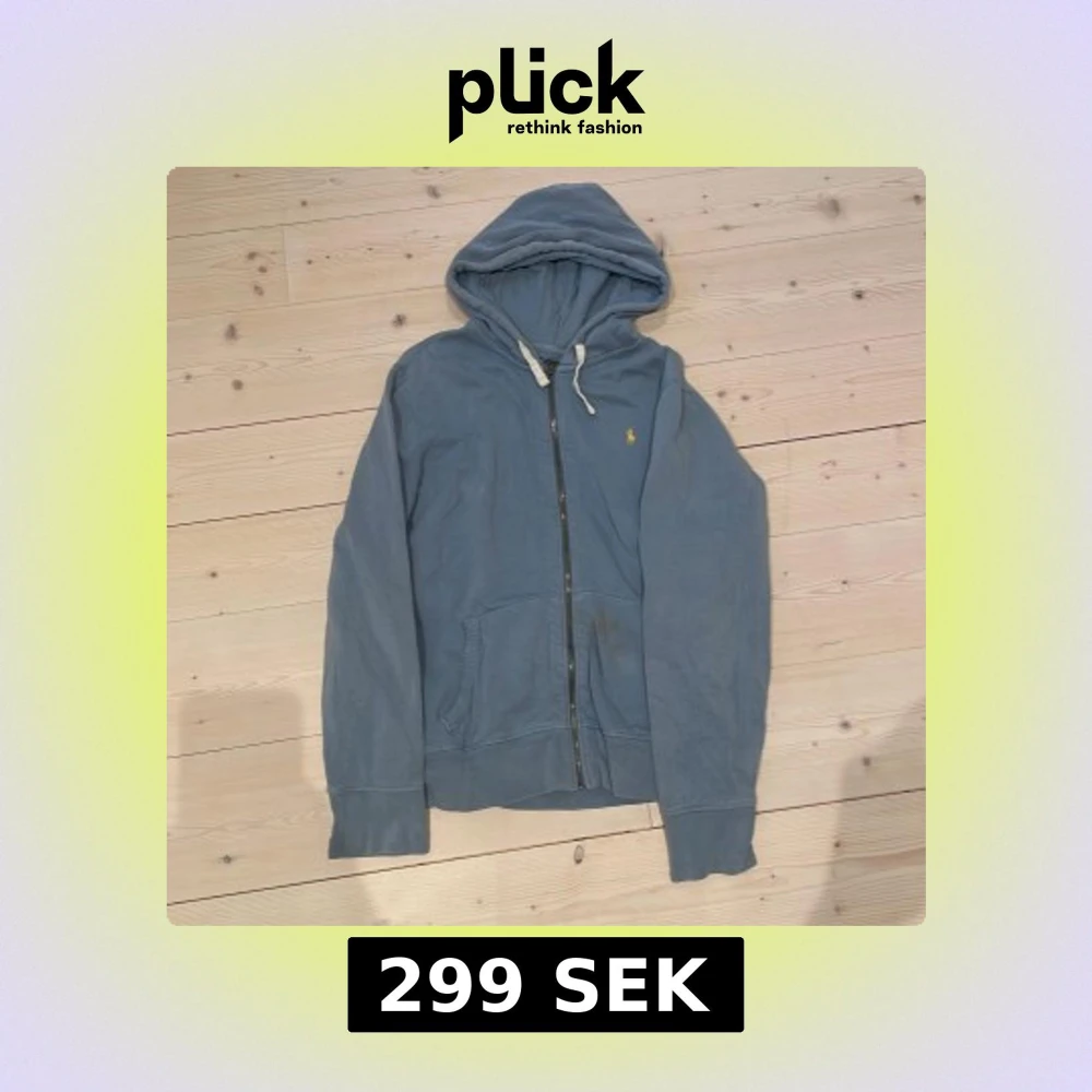 Säljer en blå hoodie från Polo Ralph Lauren med dragkedja och huva. Tröjan har en gul broderad logga på bröstet, fickor framtill och ribbade muddar vid ärmslut och nederkant. Perfekt för en avslappnad stil. Skick 8/10. Storlek XL men passar även L, skriv om ni undrar något!