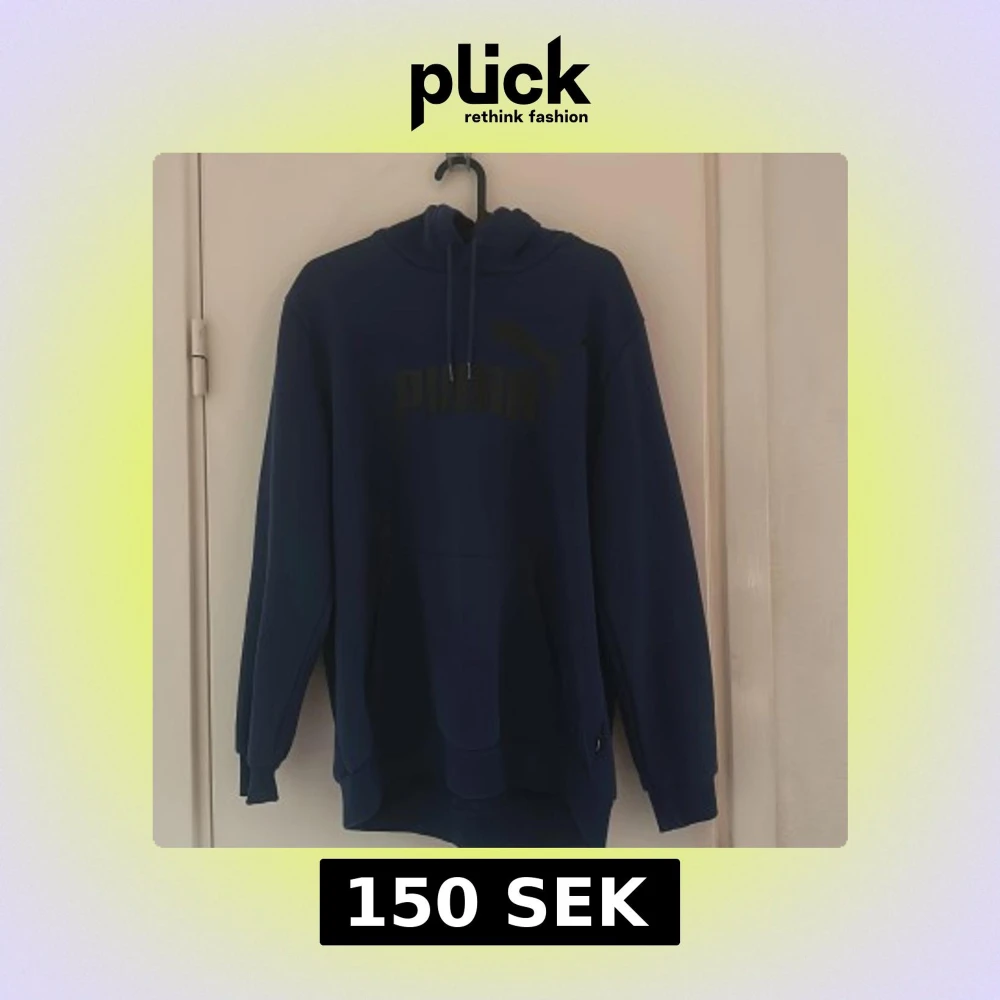 Mörkblå hoodie från Puma med klassisk logga framtill. Tröjan har huva med dragsko och en stor magficka. Perfekt för en avslappnad stil.