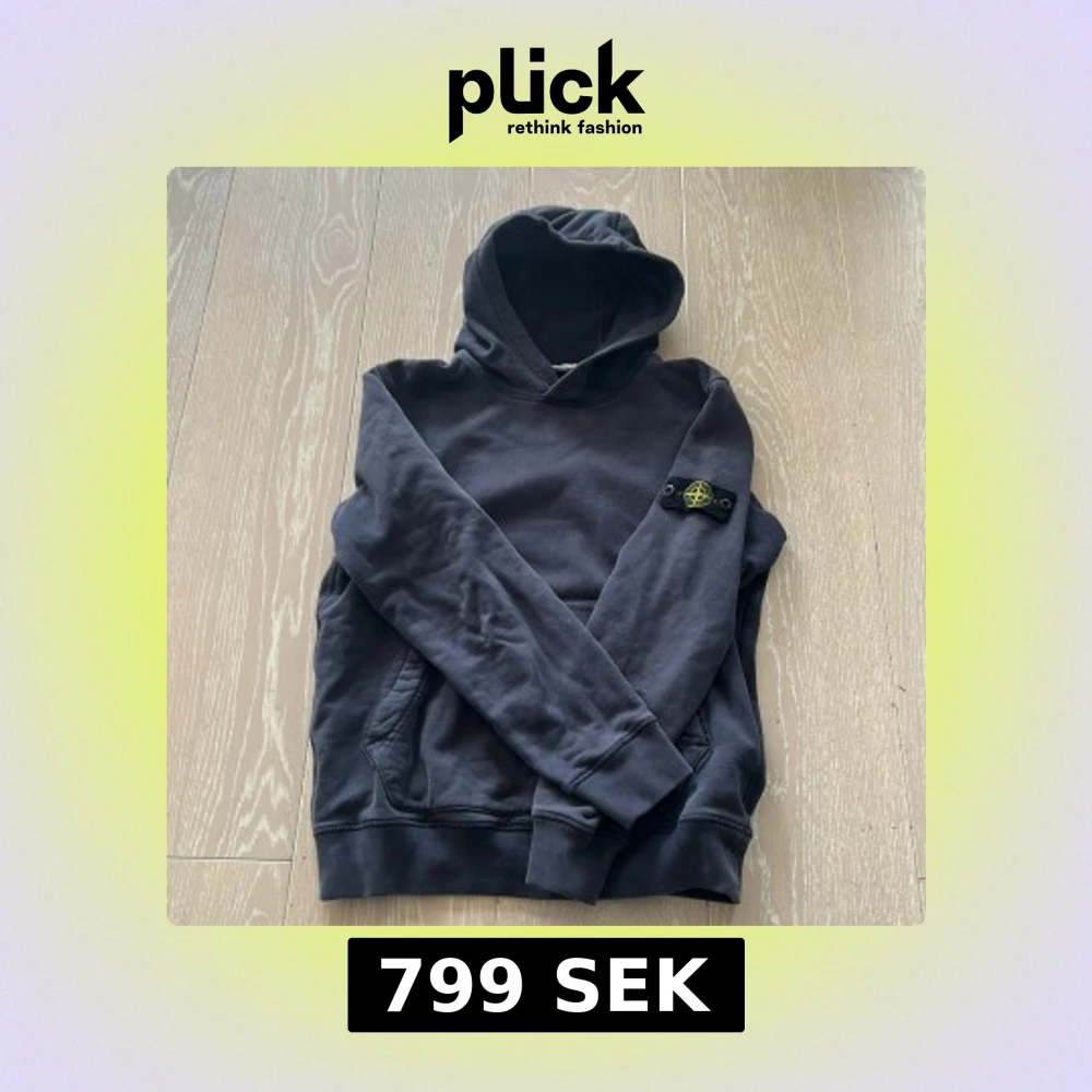 Snygg svart hoodie från Stone Island Junior med klassisk logga på ärmen. Tröjan har huva, känguruficka och långa ärmar. Tillverkad i mjuk bomull, perfekt för en chill och stilren look. Tröjan är lite urtvättad, men inte så mycket man tänker på. Jag är 160 cm lång och den sitter bra.