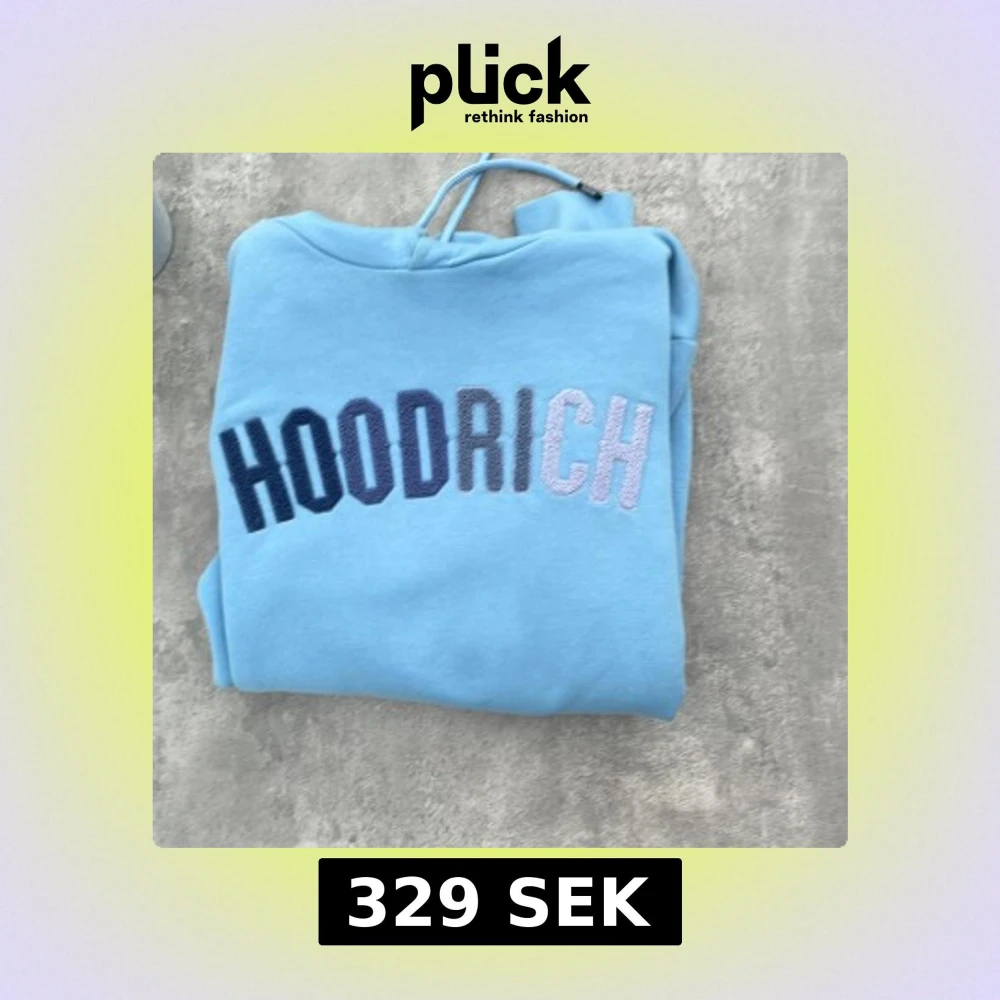 Snygg ljusblå hoodie från HOODRICH med broderad logga i olika blå nyanser över bröstet. Klassisk känguruficka, huva med dragsko och mjukt material som känns skönt mot huden. Perfekt för chill dagar eller streetwear-stil.