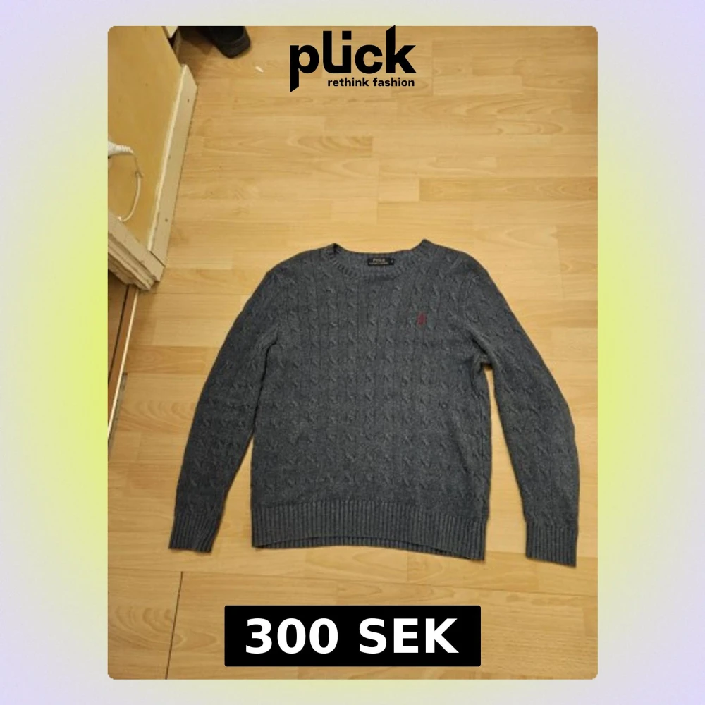 Snygg blå kabelstickad tröja från Polo Ralph Lauren i storlek S. Tröjan har rund hals, långärmad design och ett litet rött broderat Polo-logo på bröstet. Perfekt för dig som gillar klassisk stil med en modern touch.