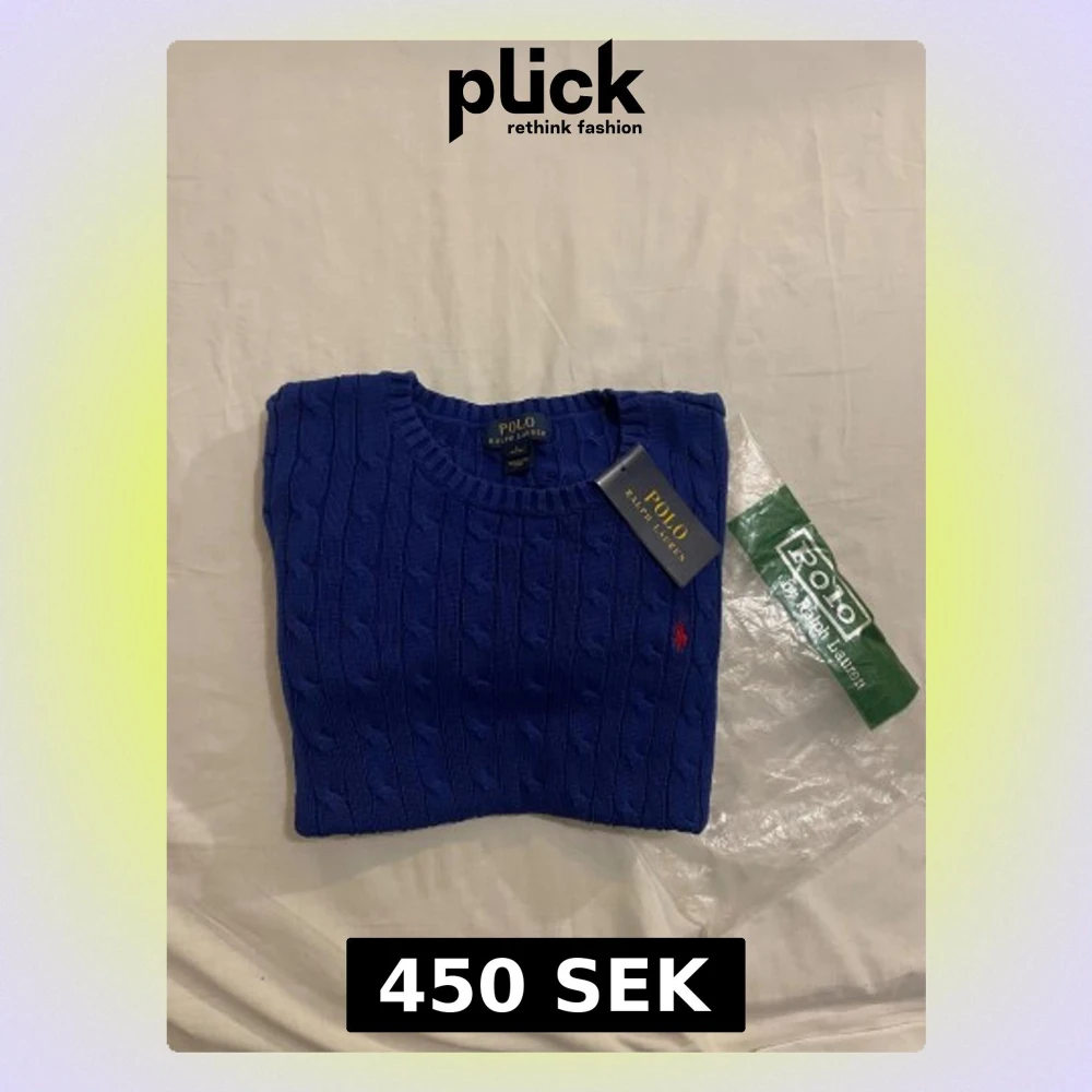 Blå kabelstickad tröja från Polo Ralph Lauren med rund hals och ribbade muddar. Tröjan har ett litet rött Polo-logo broderat på bröstet och är tillverkad i mjuk bomull. Perfekt för dig som gillar klassisk och stilren design.