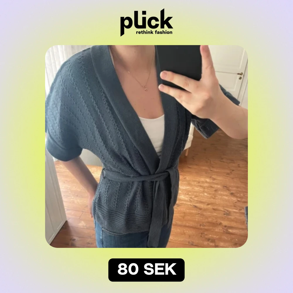 Supergullig blå kofta som jag säljer pga den inte används längre. Är storlek L men passar också mig som är M. Köpt secondhand för några månader sen men är sparsamt använd, inga defekter!