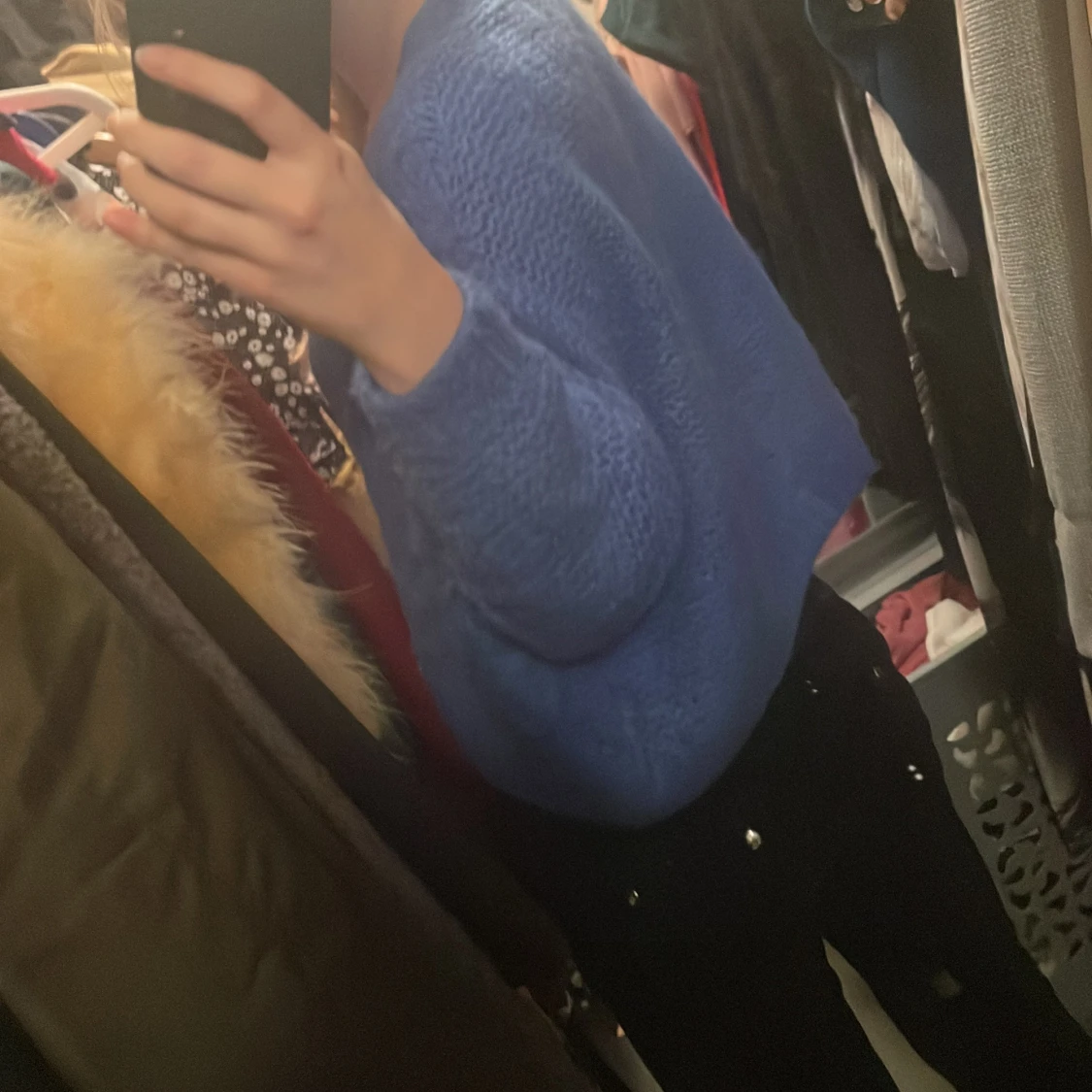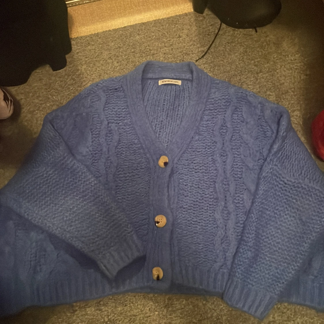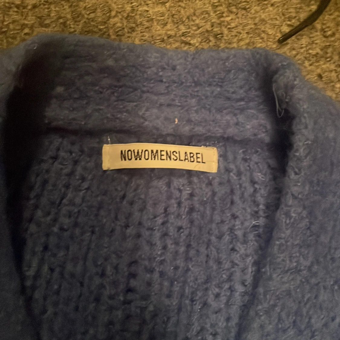 Säljer en mysig och skön blå stickad kofta från NOWOMENSLABEL. Koftan har ett fint flätmönster och stora knappar framtill. Perfekt för kyligare dagar med sin varma och bekväma design. 💙