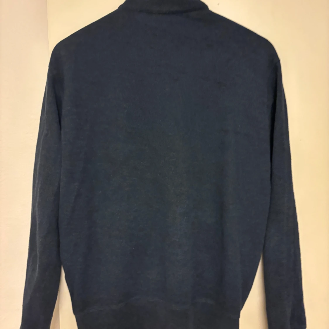 Mörkblå kofta från Ralph Lauren med dragkedja framtill och klassisk broderad logga på bröstet. Tröjan har hög krage, två fickor och är långärmad. Perfekt för lager-på-lager och chill stil.
