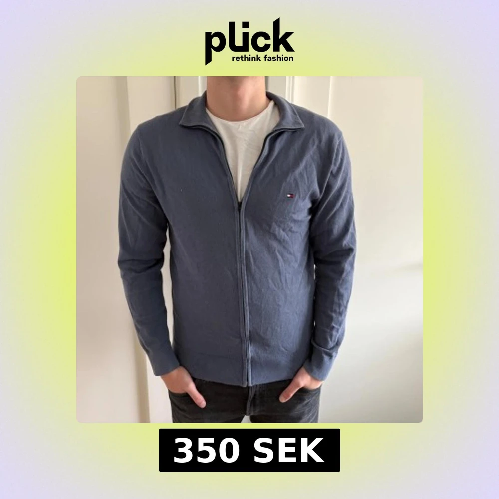 Snygg blå kofta från Tommy Hilfiger med dragkedja framtill och liten logga på bröstet. Tröjan har lång ärm, ribbade muddar och klassisk krage.