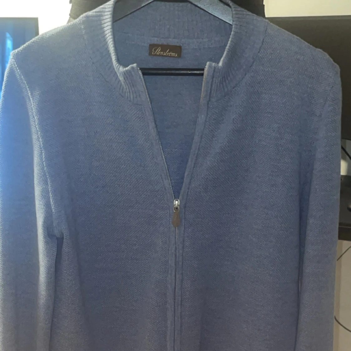 Snygg blå kofta från Stenströms med dragkedja framtill. Storlek M. Skriv gärna om ni har frågor.
