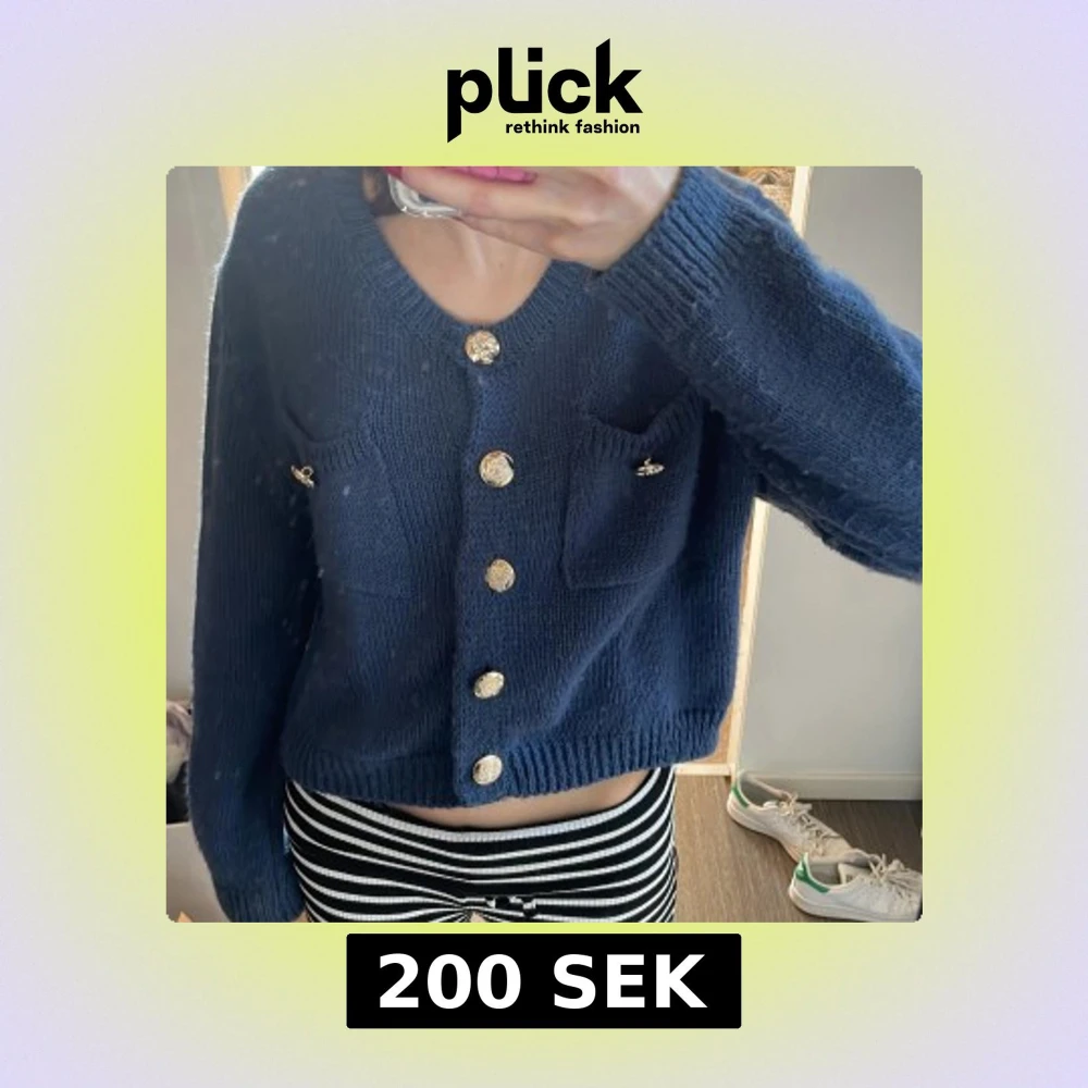 Säljer en snygg mörkblå stickad kofta från Meet Me There. Koftan har guldknappar och två små fickor framtill. Den är croppad och har långa ärmar. Jag har oftast xs! Den är knappt använd. Pris kan diskuteras.
