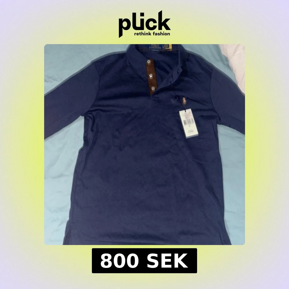 Säljer en stilren blå långärmad pikétröja från Ralph Lauren. Tröjan har en klassisk krage med knappar och det ikoniska broderade logotypen på bröstet. Perfekt för en avslappnad men ändå elegant look. Aldrig använd !!!