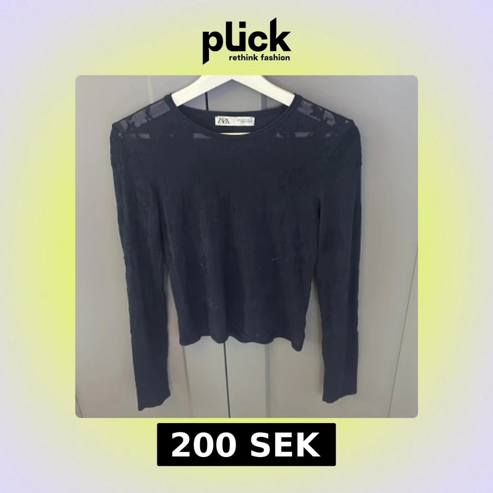 Säljer en blå långärmad topp från Zara i storlek M. Toppen har ett diskret blommigt mönster i tyget och är tillverkad i ett tunt, lätt material. Perfekt att styla med jeans eller kjol för en snygg look.