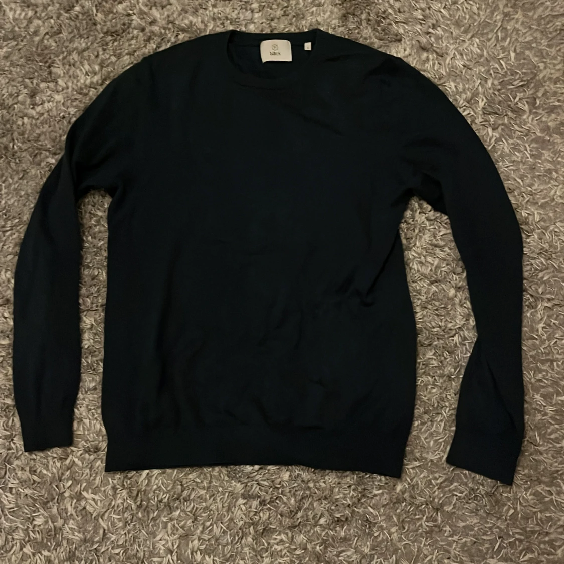 En stilren svart långärmad tröja från Bläck i storlek S. Tröjan har rund halsringning och är tillverkad i ett mjukt material som passar perfekt till lager-på-lager. Enkel och clean design som funkar till många olika looks.
