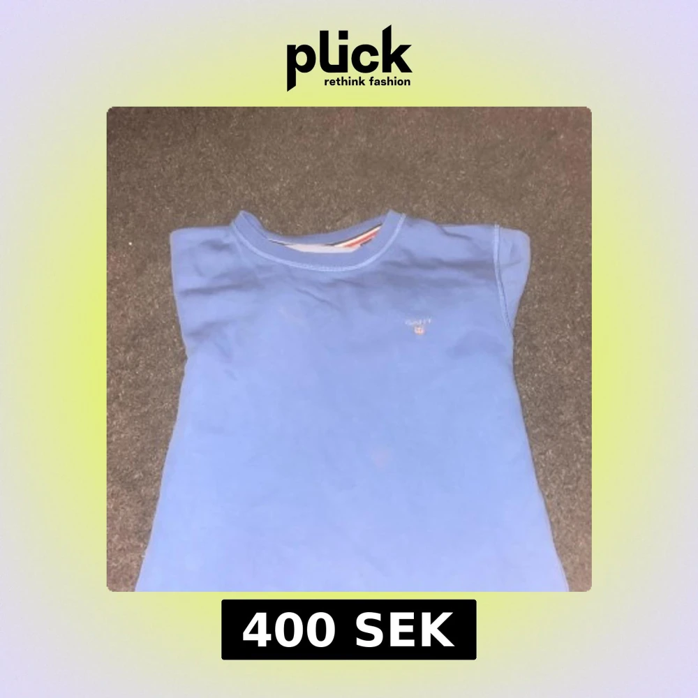 Säljer en stilren blå långärmad tröja från Gant med broderad logga på bröstet. Tröjan är i mjuk bomull och har klassisk rund halsringning med snygg randig detalj på insidan av kragen. Perfekt för dig som gillar enkel och clean stil.