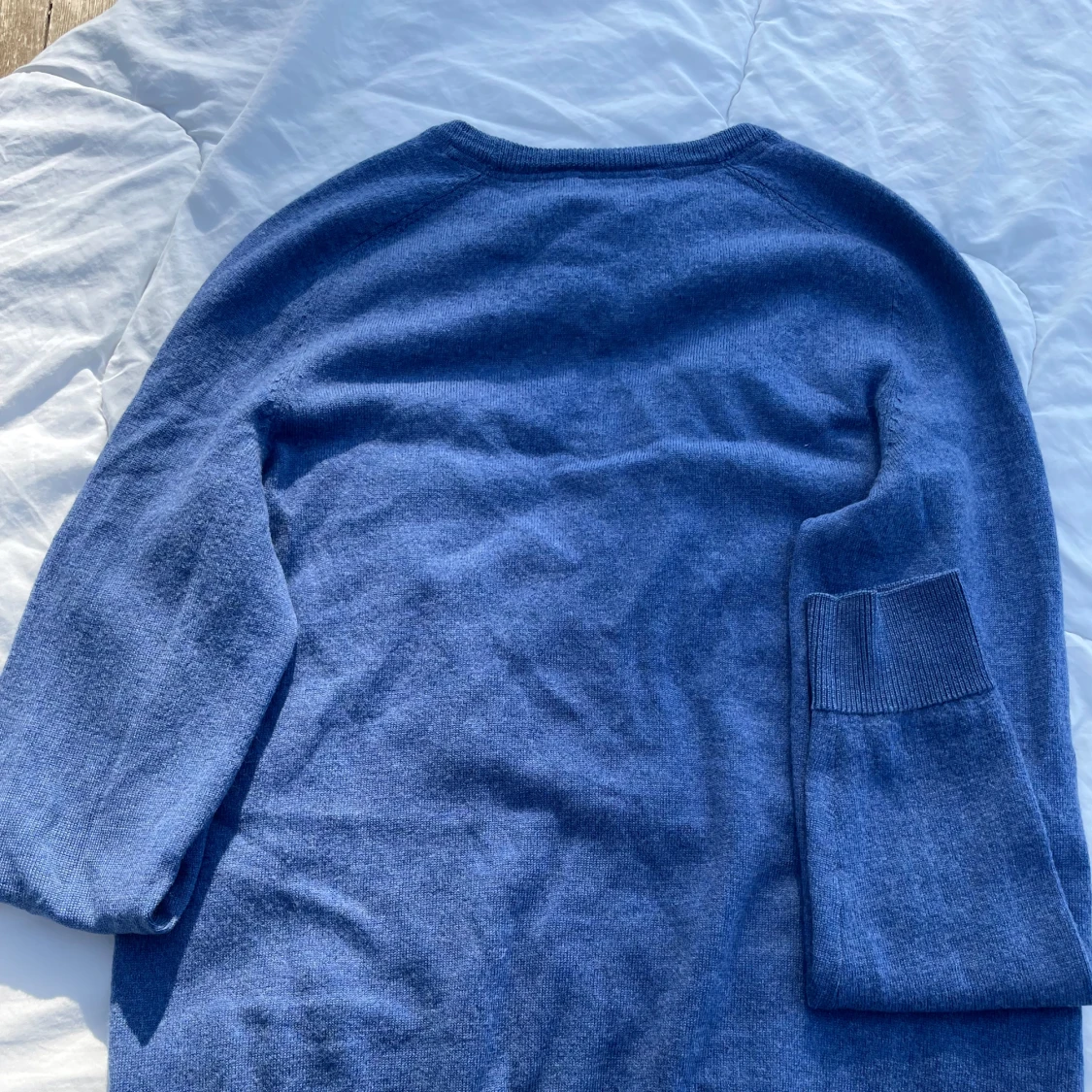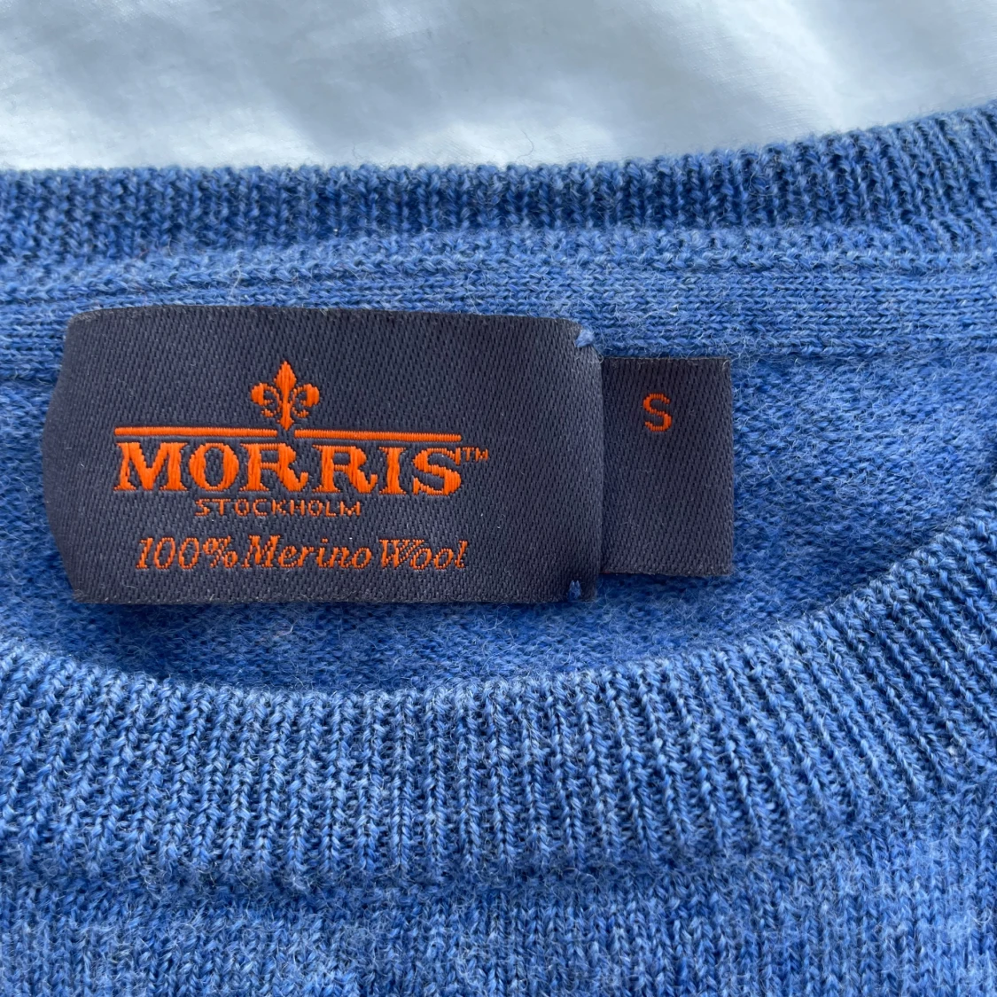 Säljer en stilren blå tröja från Morris i 100% merinoull. Tröjan har en liten broderad detalj på bröstet och långa ärmar med ribbade muddar. Perfekt för våren! Skriv till mig om flera bilder eller frågor💛