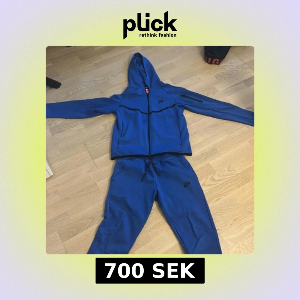 Säljer en blå Nike tech komplet från Nike i storlek S. Tröjan har hel dragkedja, huva och svarta detaljer, inklusive en praktisk ficka med dragkedja på ärmen. Materialet är mjukt och sportigt, perfekt för träning eller chill. Nike-logga på bröstet och ärmen.
