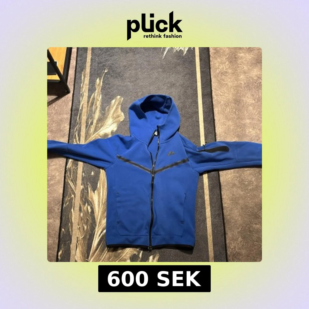 Säljer en blå huvtröja från Nike med dragkedja och svarta detaljer +frakt passar perfekt med S