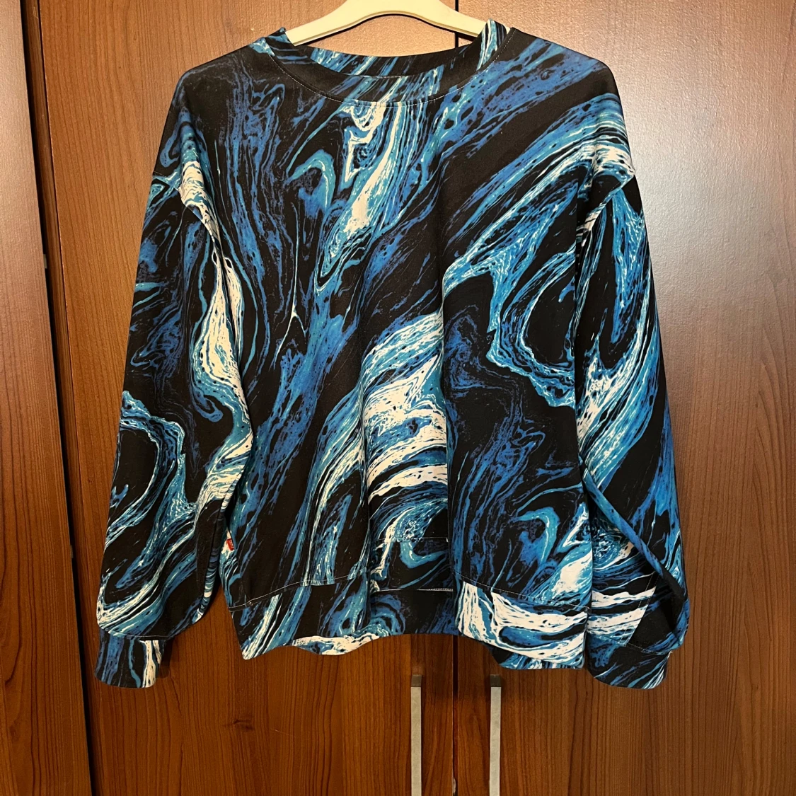 Cool långärmad tröja från Sweet Skts med blått, svart och vitt marmorerat mönster. Oversized passform och rund halsringning. Storlek s🥰