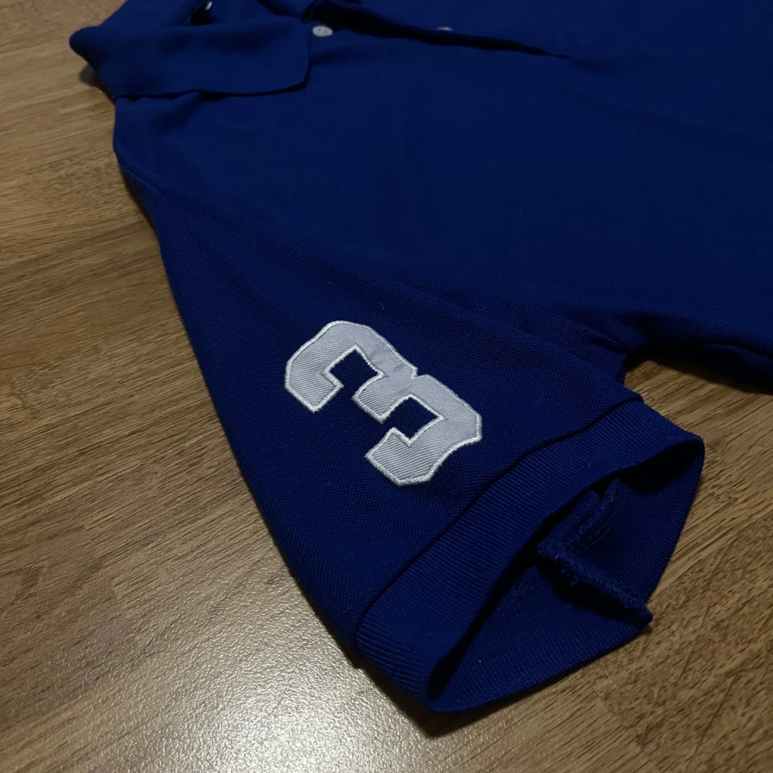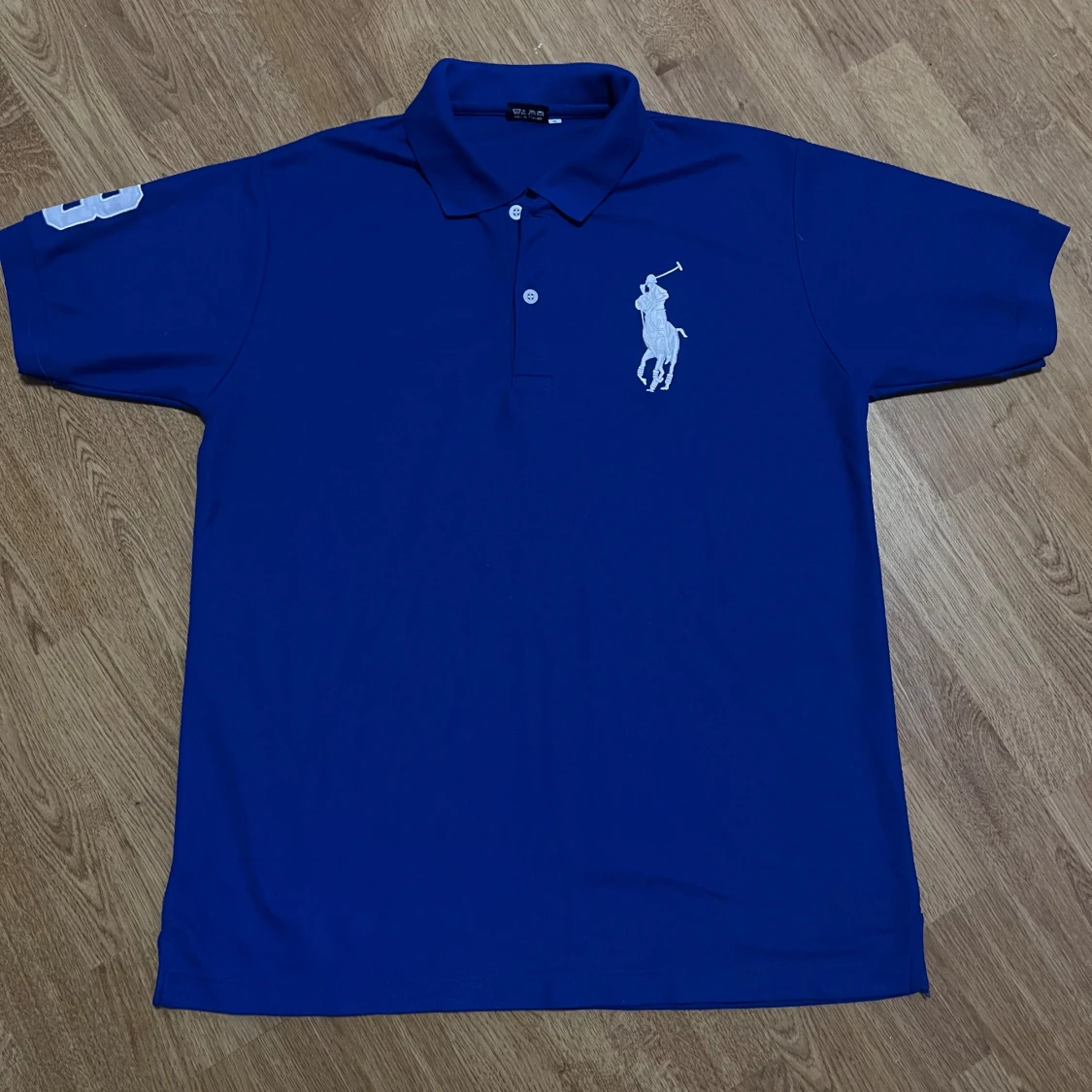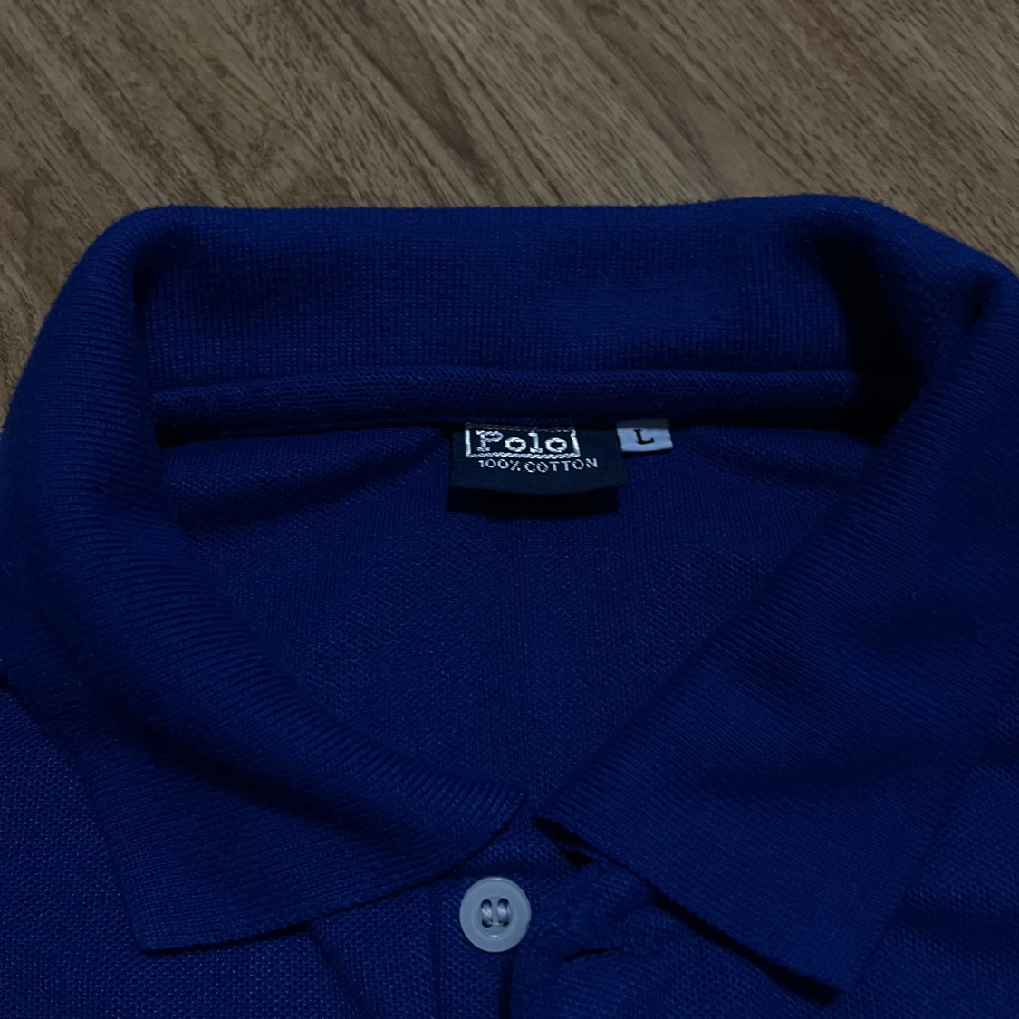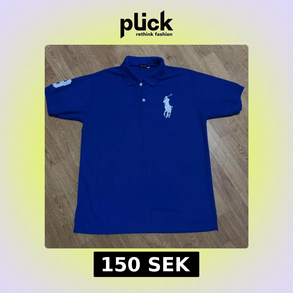 Fet blå pikétröja i storlek L. Helt ny. Tyvärr inte äkta men riktigt fet ändå