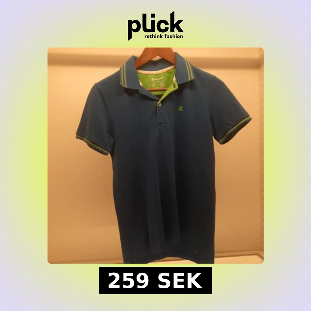 Säljer en snygg blå pikétröja från Champion med gröna detaljer och broderad logga på bröstet. Tröjan har korta ärmar och en klassisk krage med knappar. Perfekt för en sportig look!