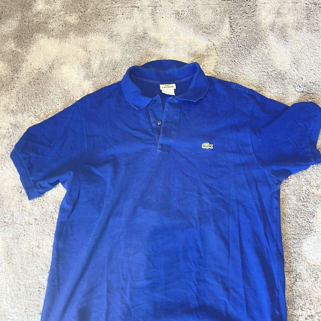 Klassisk blå pikétröja från Lacoste med den ikoniska krokodilloggan på bröstet. Tröjan har korta ärmar, krage och knäppning framtill. Tillverkad i mjuk bomull som känns skön mot huden. Perfekt för en clean och somrig look!