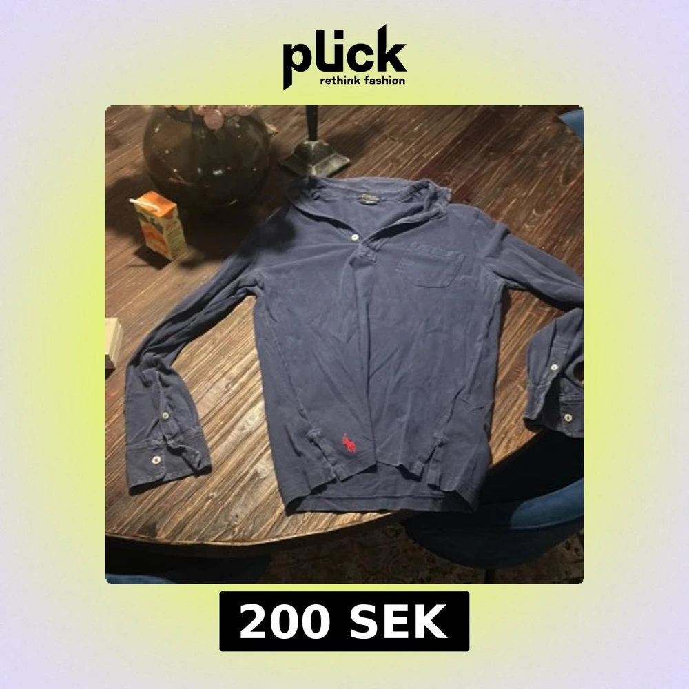 Snygg marinblå långärmad pikétröja från Polo Ralph Lauren i lätt bomullsmaterial. Klassisk krage, knappslå och bröstficka. Ikoniska röda loggan broderad nertill. Perfekt för en chill och stilren look.