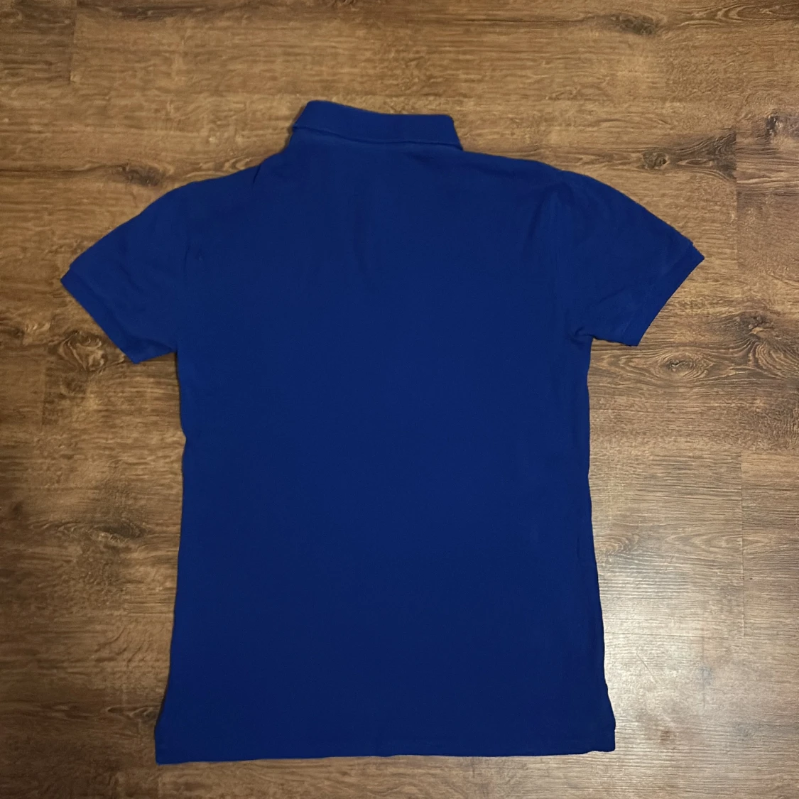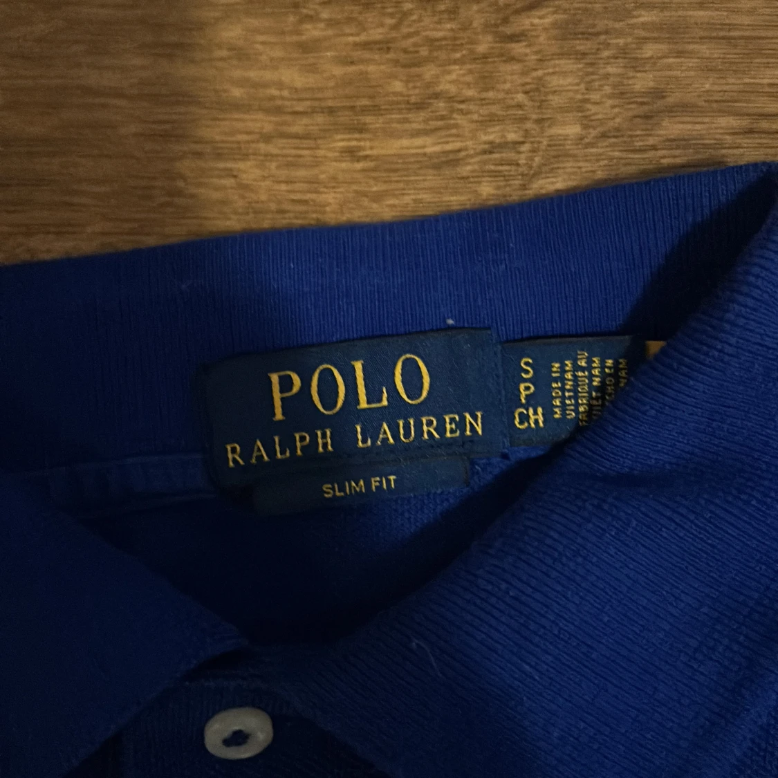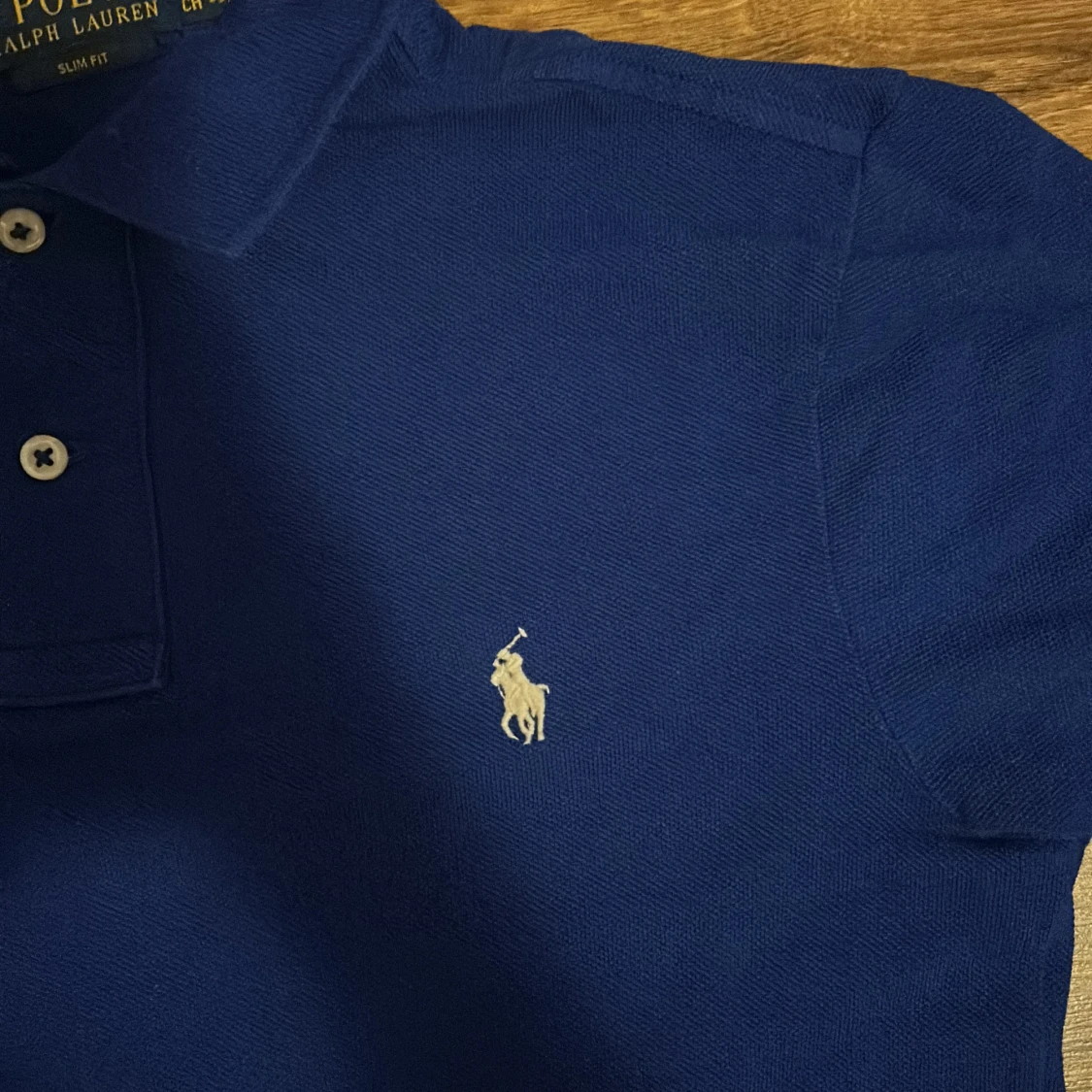 Snygg blå pikétröja från Ralph Lauren i slim fit. Tröjan har en klassisk krage med knappar och det ikoniska broderade logotypen på bröstet. Perfekt för en stilren look.