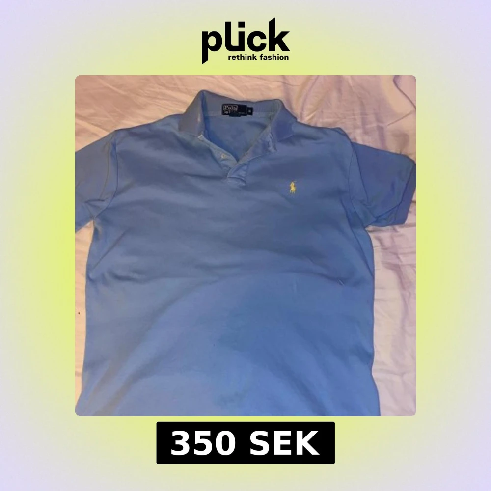 Säljer en klassisk ljusblå pikétröja från Ralph Lauren med den ikoniska broderade loggan i gult på bröstet. Tröjan har korta ärmar och en stilren krage med knappar. Perfekt för en avslappnad men stilfull look. Den är i storlek M och passar perfekt du får med 10 stycken olika Ralph lauren tröjor för 375kr